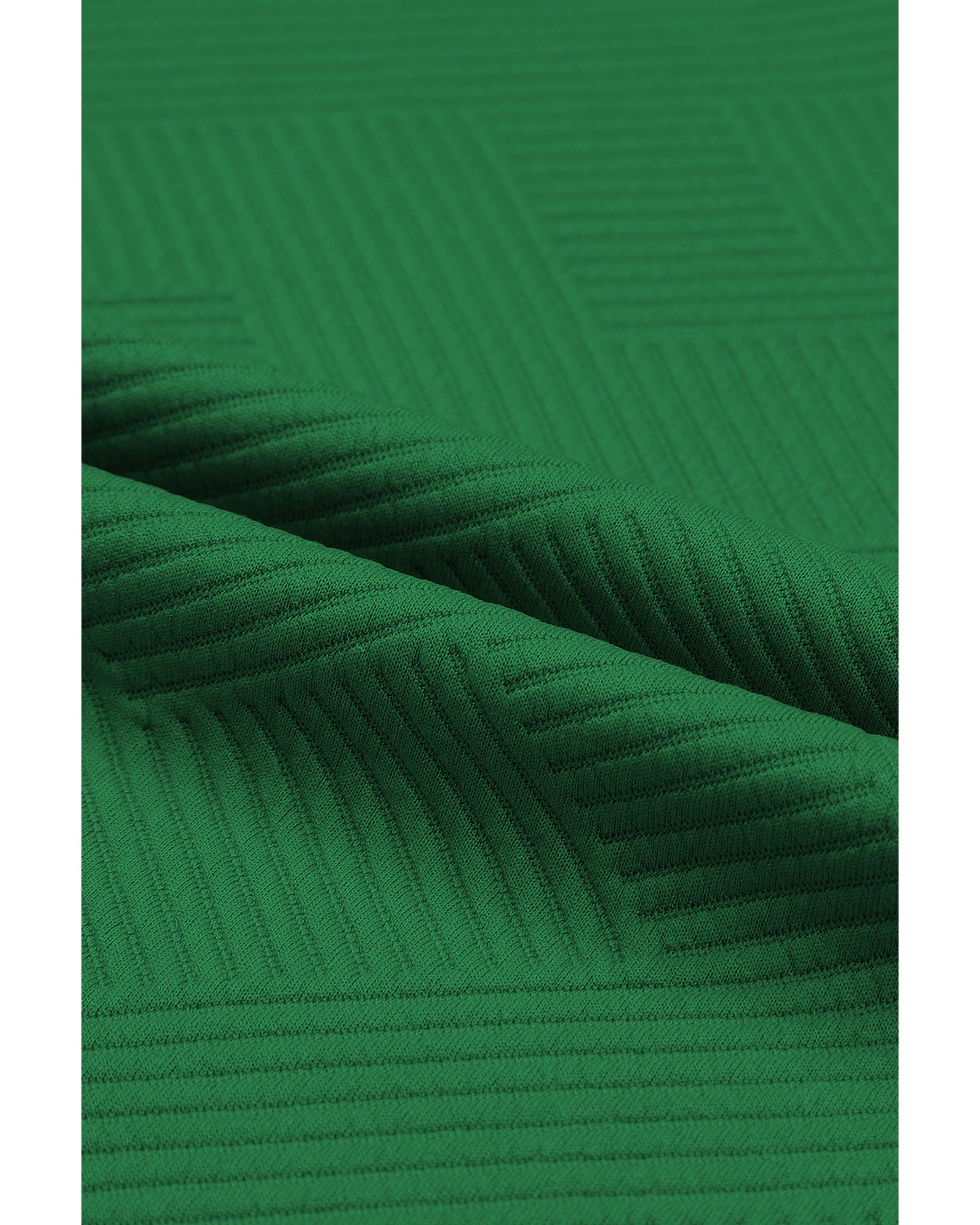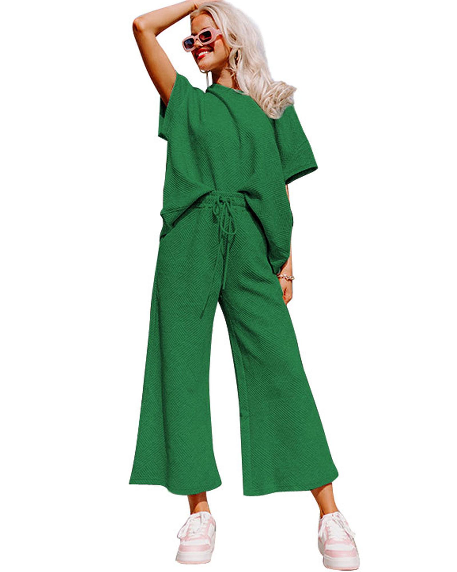 Dark Green Textured Loose Fit T Shirt and Drawstring Pants Set – S