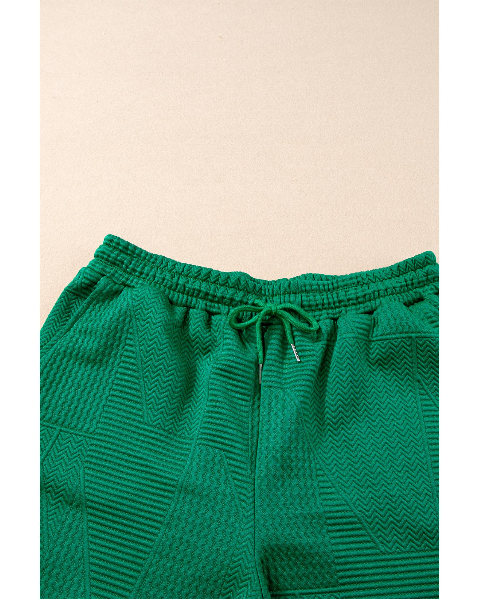 Dark Green Textured Ruffle Split Top and Drawstring Shorts – S