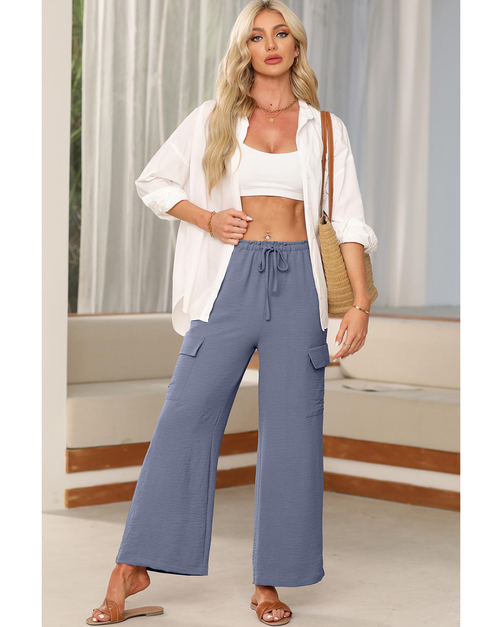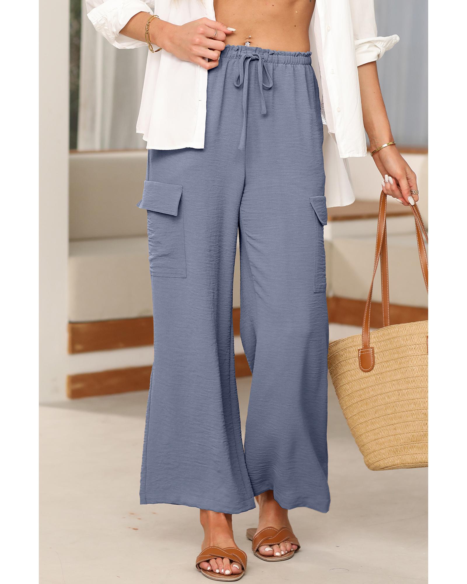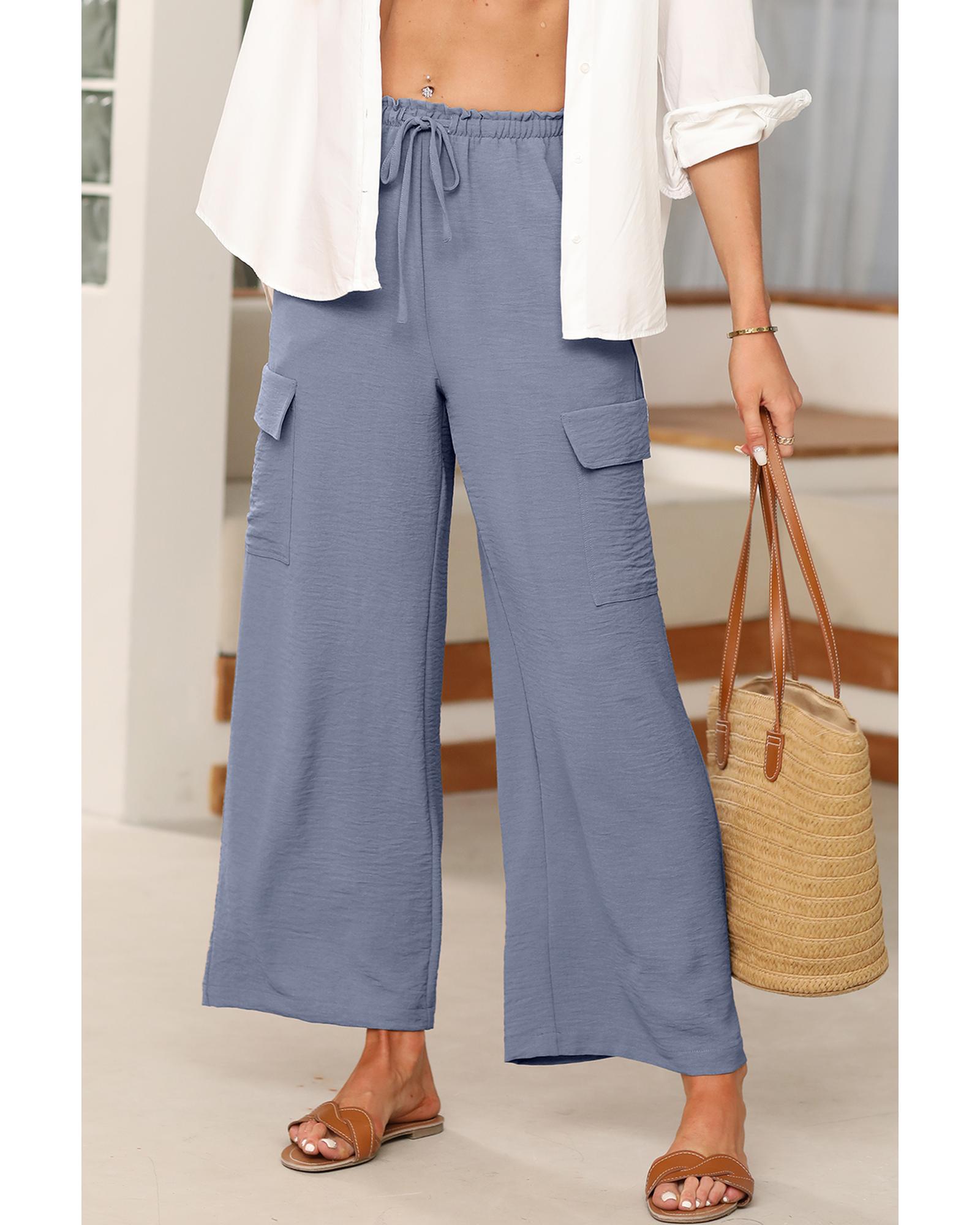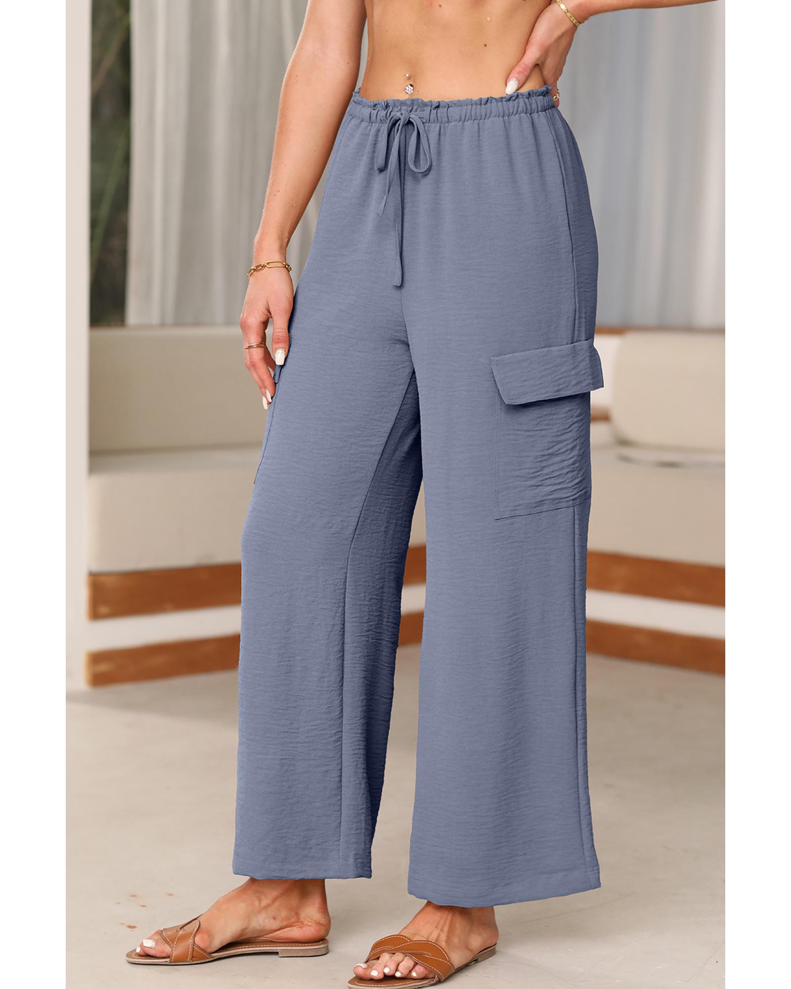 Dark Grey Drawstring Frilled Waist Wide Leg Utility Trousers – L