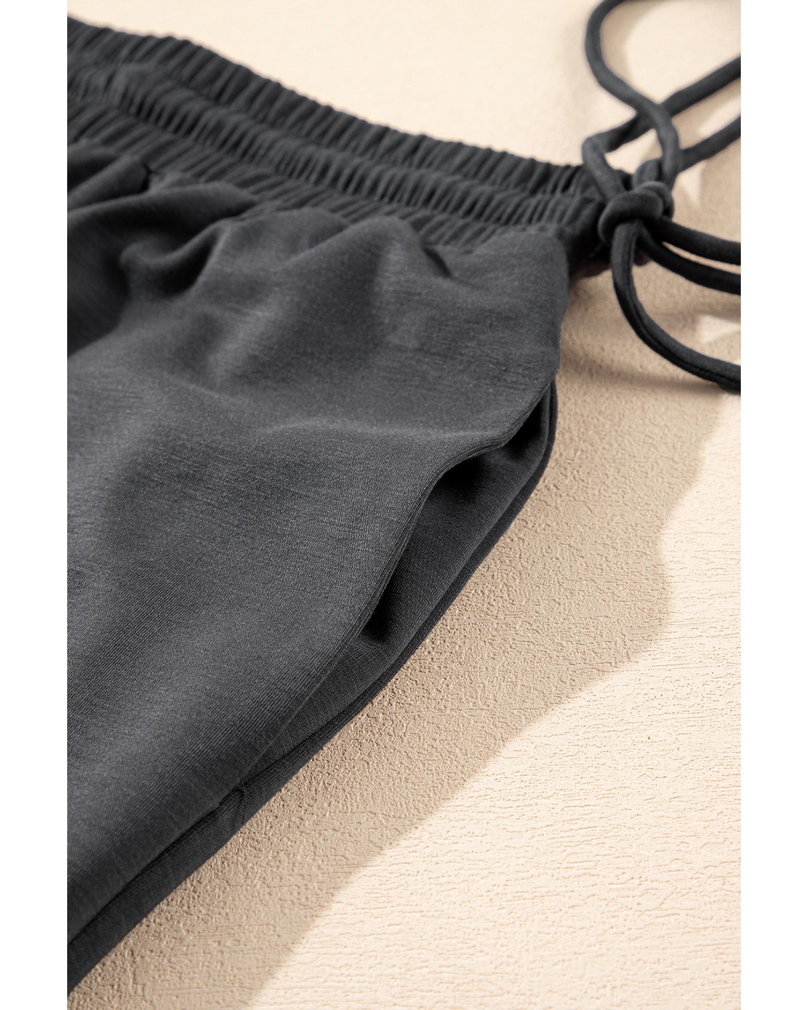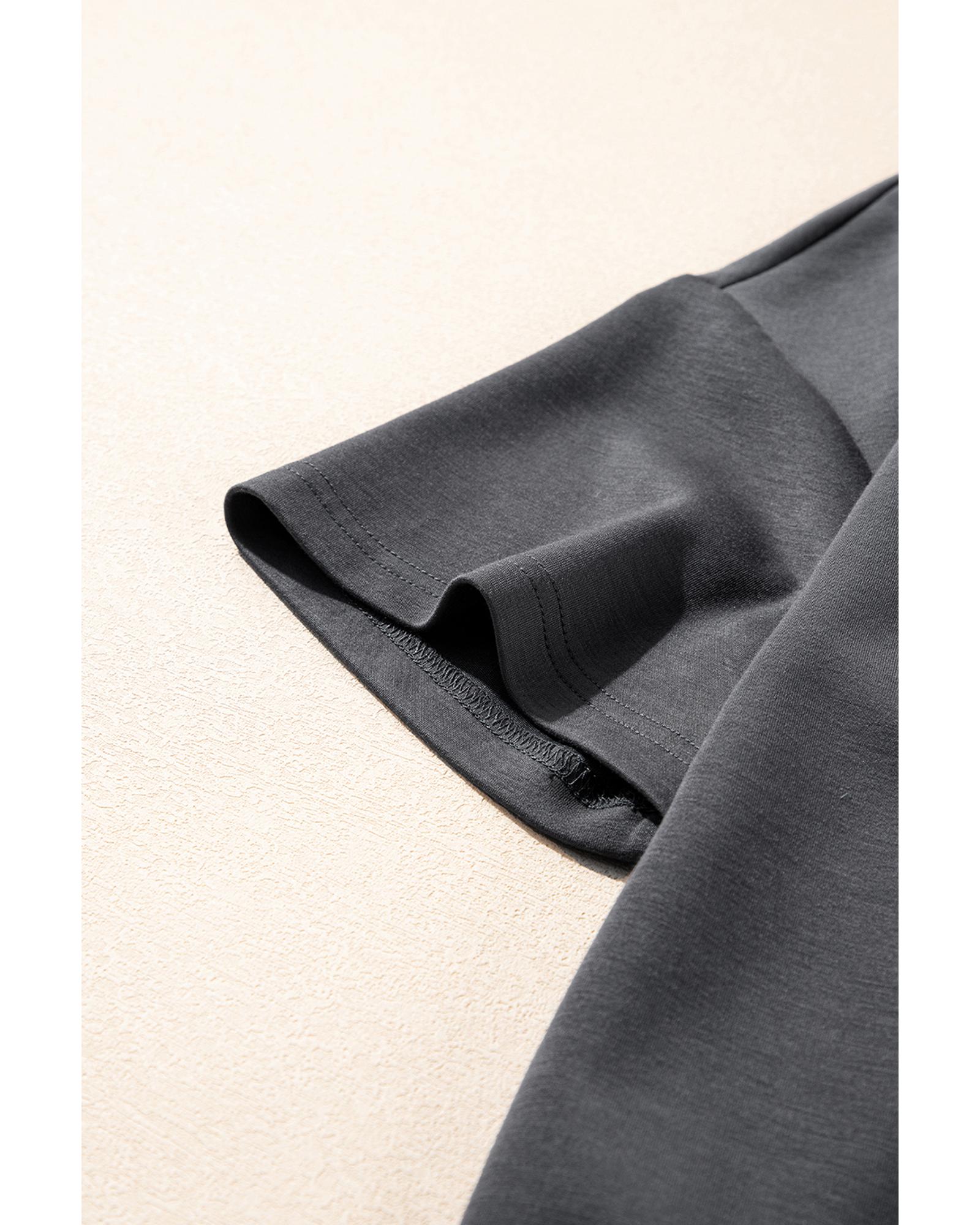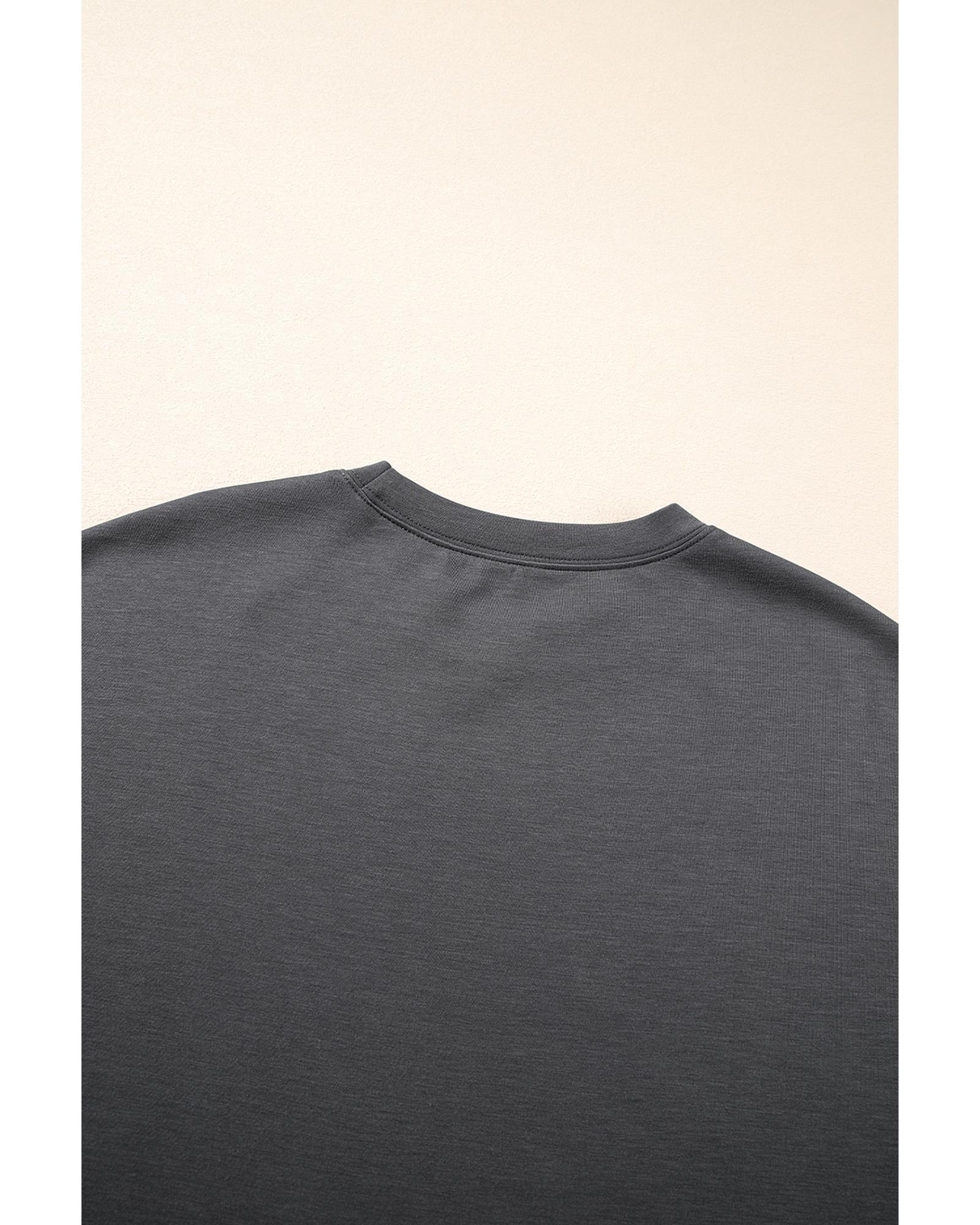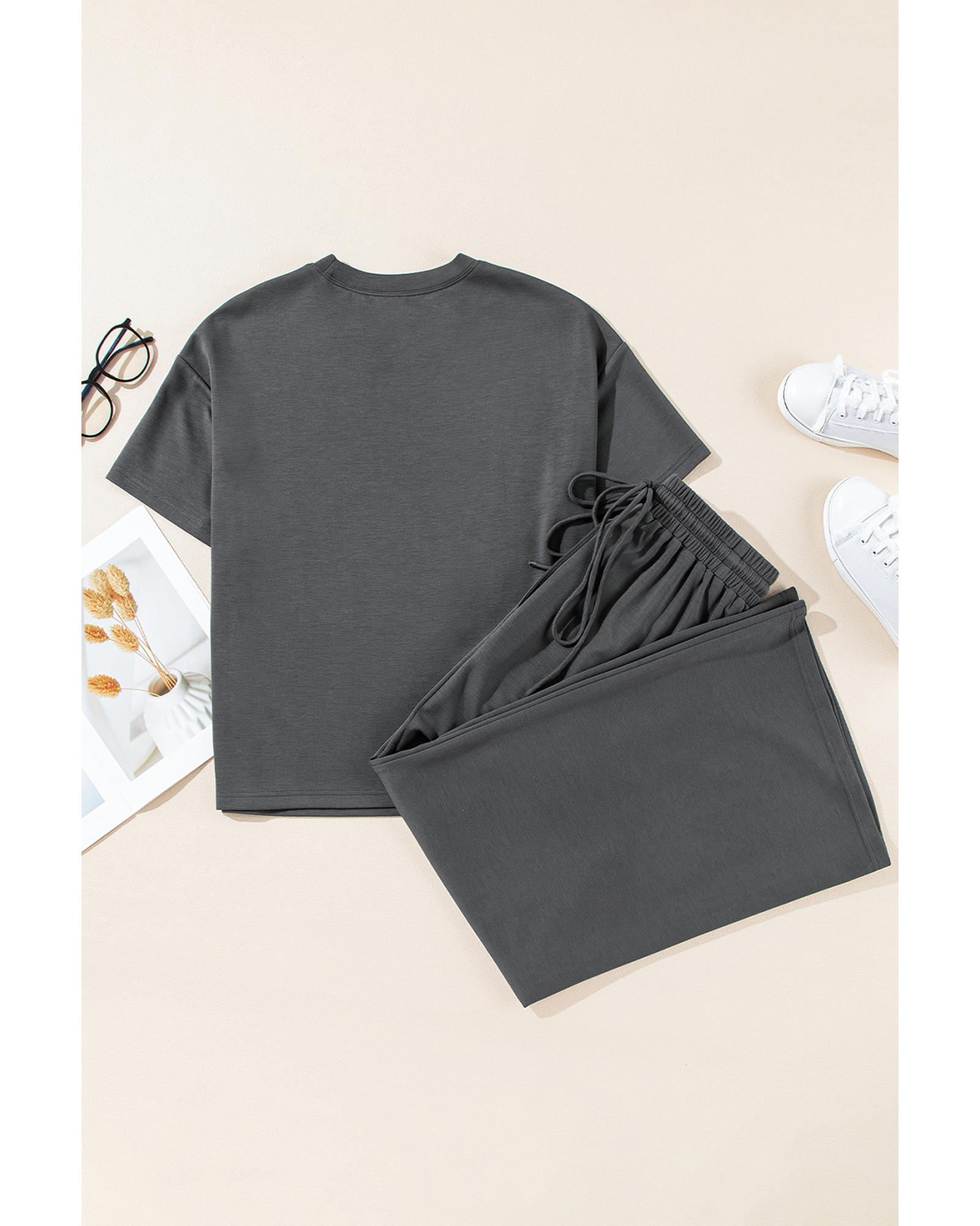 Dark Grey Drawstring Side Crewneck Tee and Loose Pants Set – XL