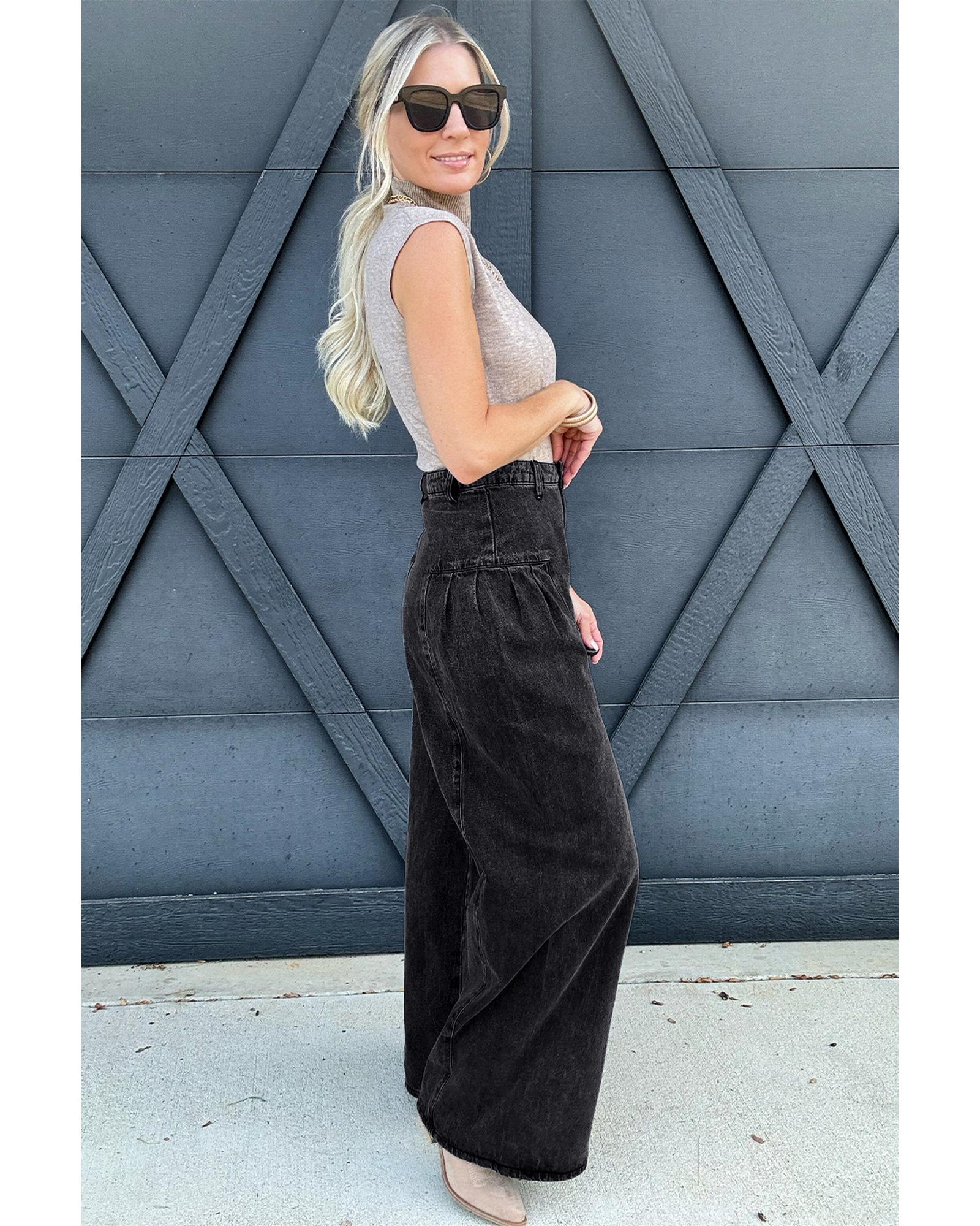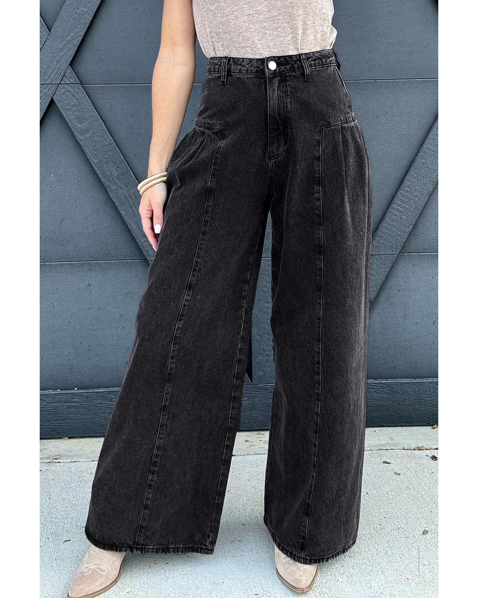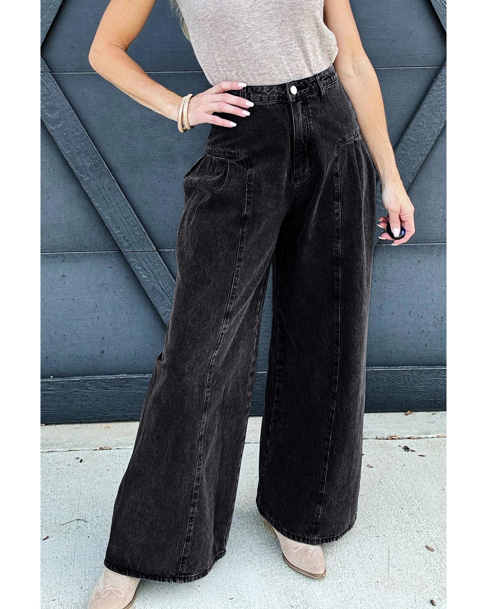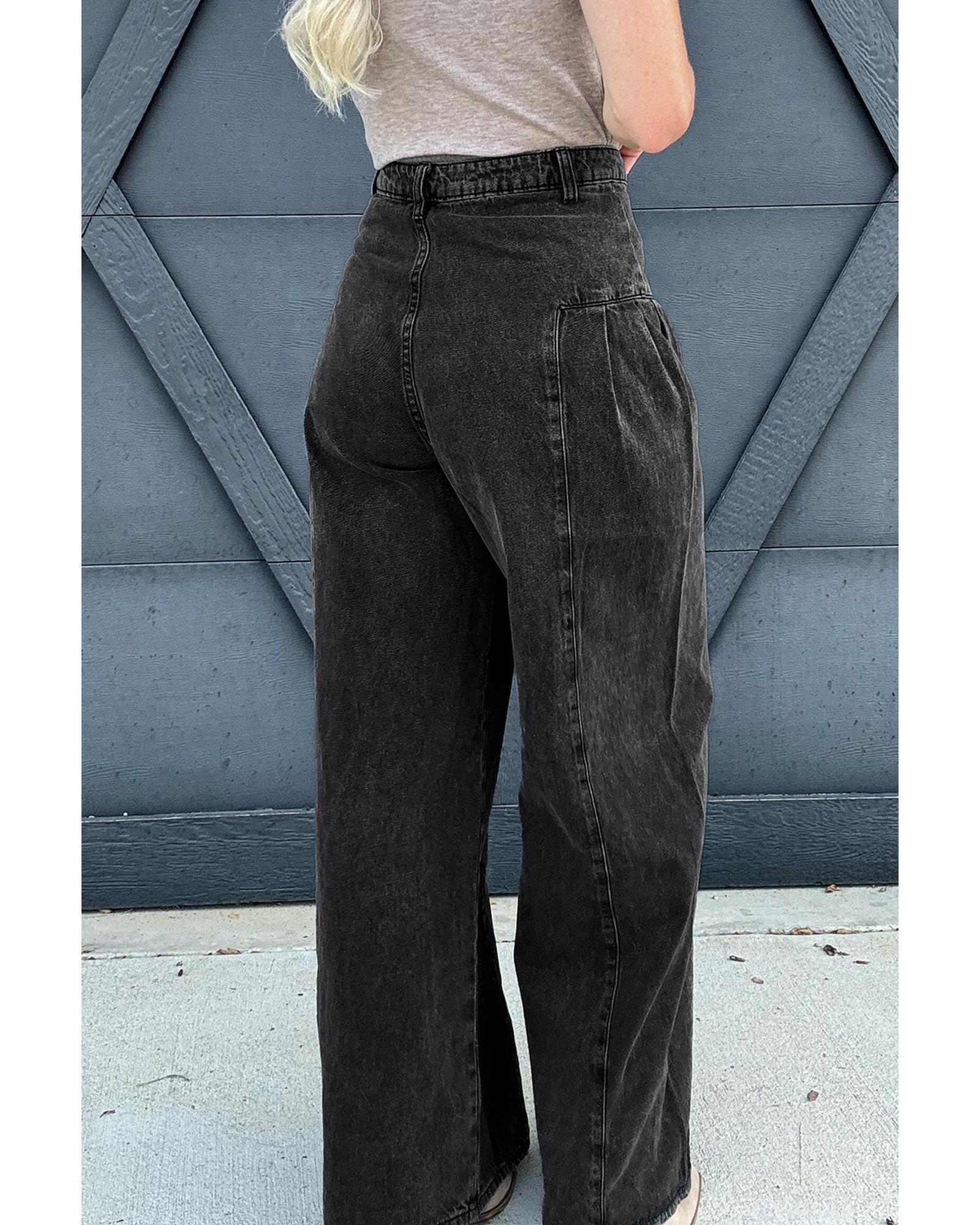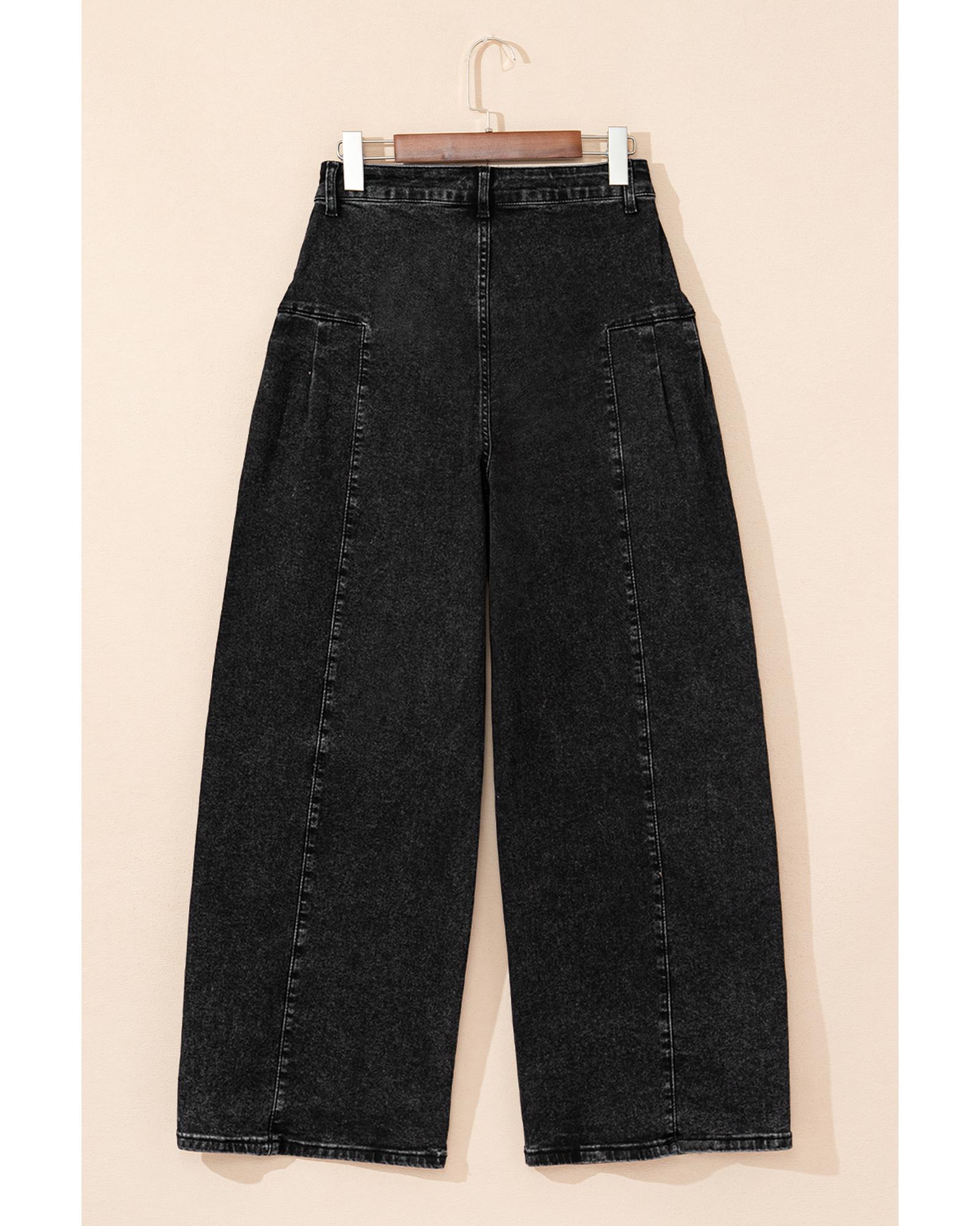 Dark Grey Pleated Wide Leg Mineral Wash Denim Pants – 16 US