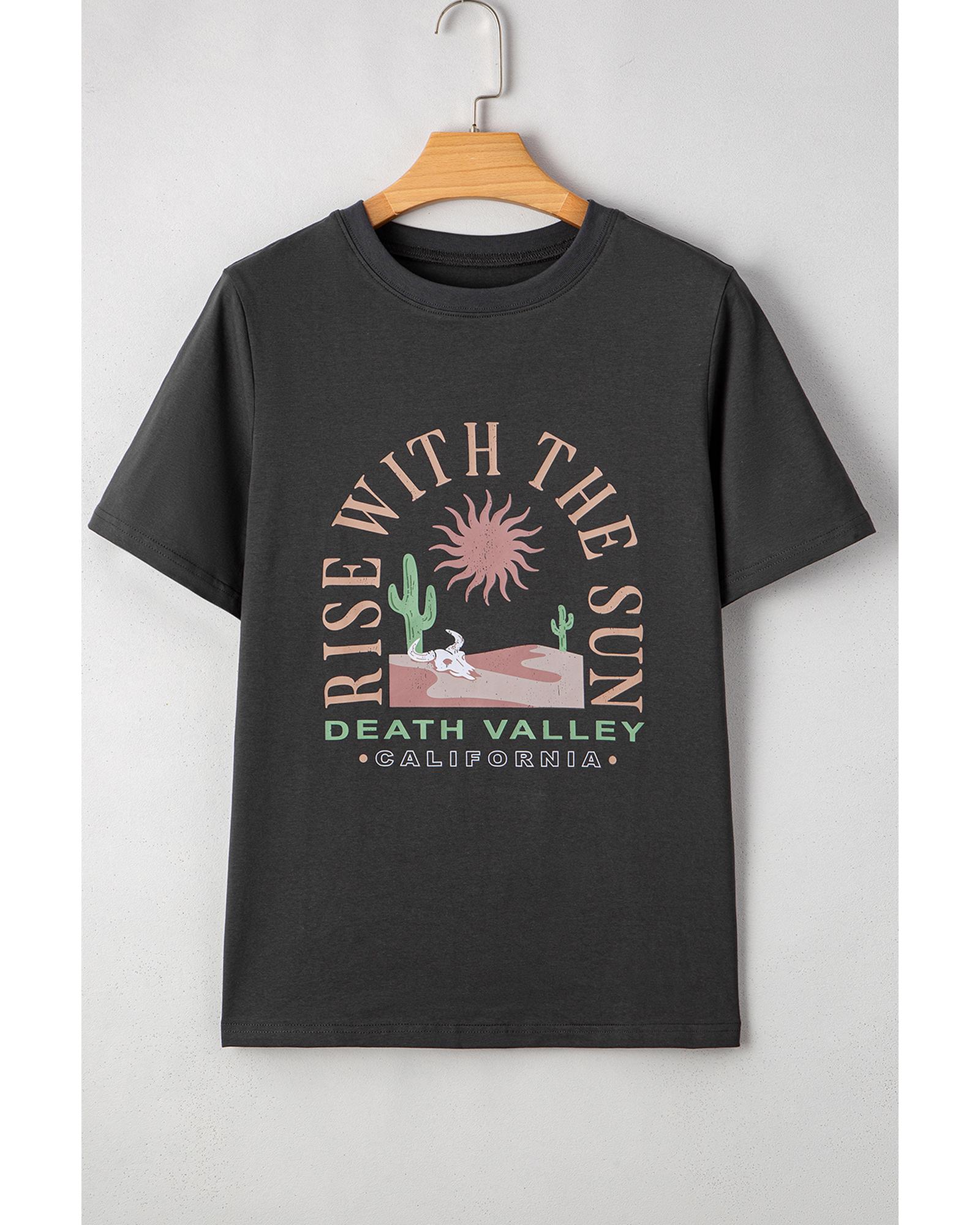 Dark Grey RISE WITH THE SUN Western Fashion Graphic Tee – M