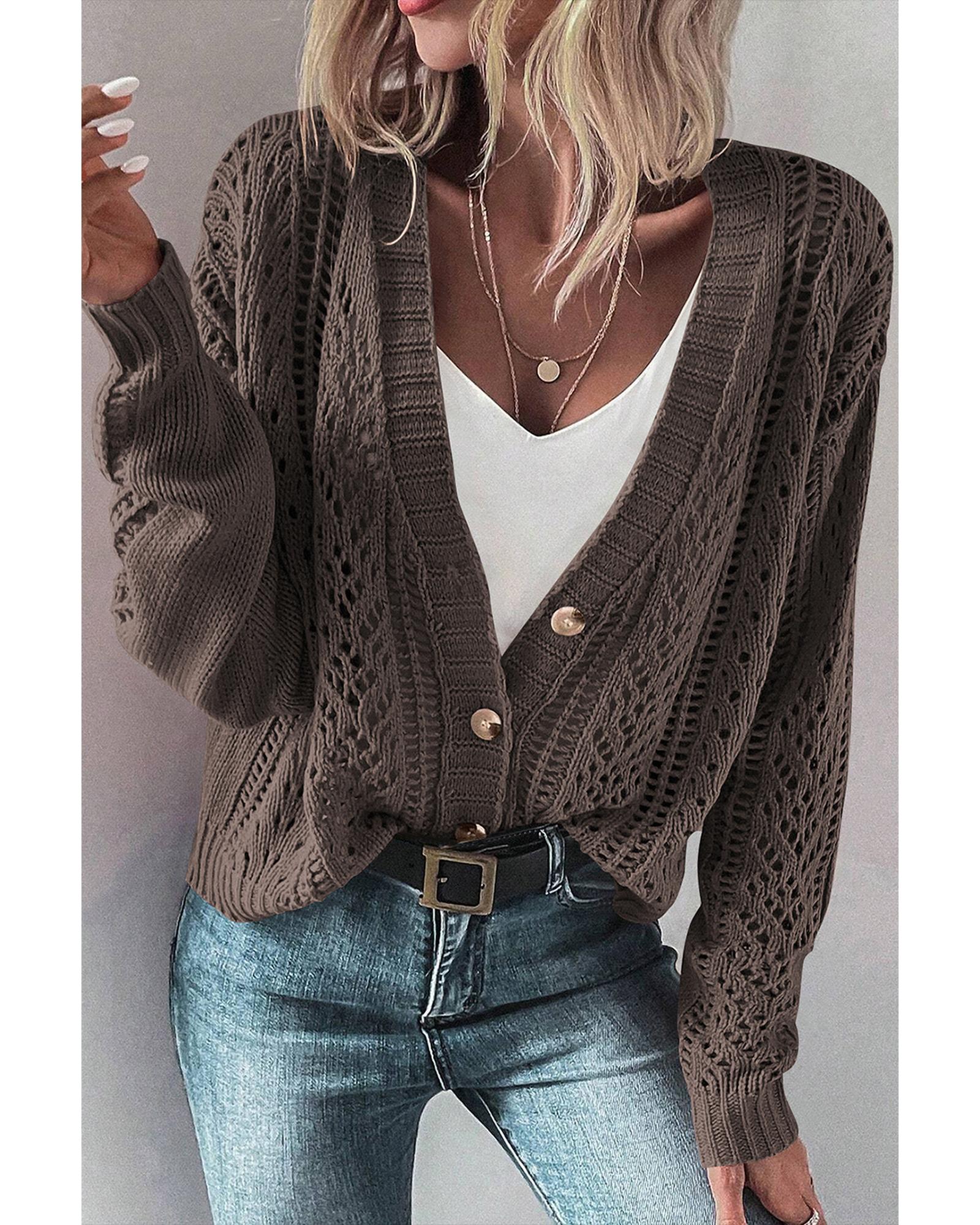 - Dark khaki open knit sweater cardigan