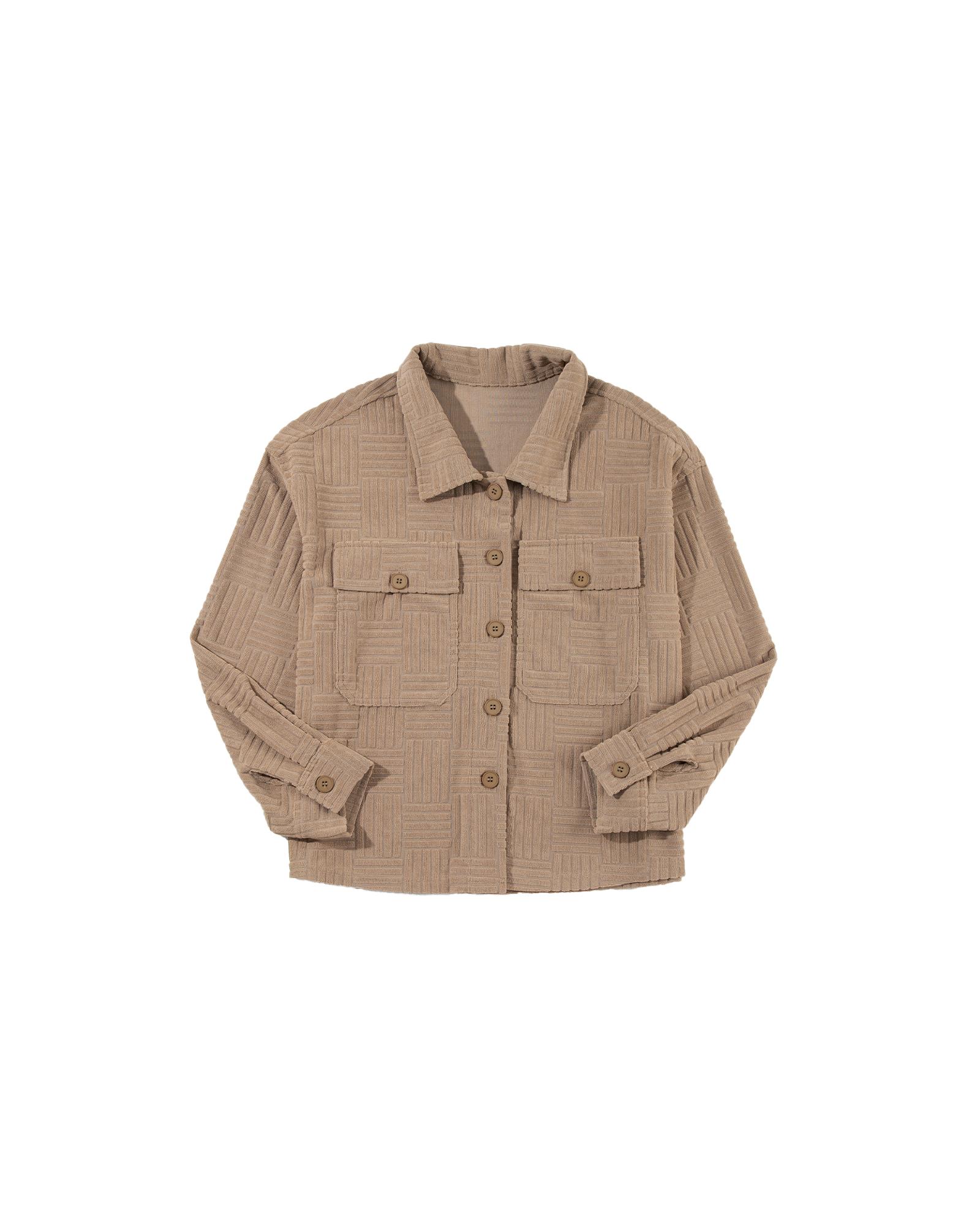 Dark Khaki Textured Chest Pocket Button-up Shacket – L