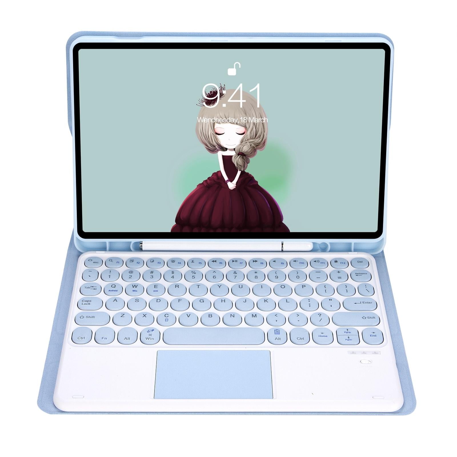 • 1 x Yt098B-A Detachable Candy Colour Skin Feel Texture Round Keycap Bluetooth Keyboard Leather Case With Touch Control For Ipad Air 4 10.9 2020 / Air 5 10.9 2022