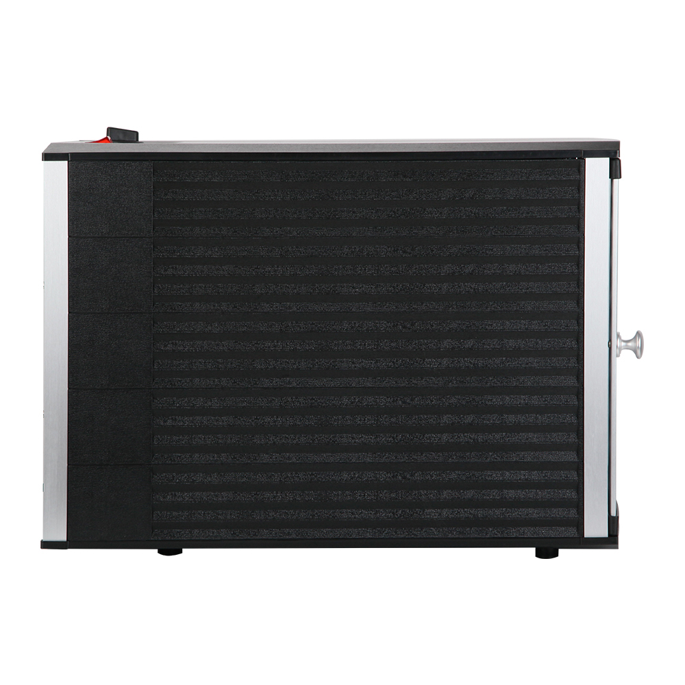 Made from food-grade ABS plastic, our food dehydrator features a complete drying system with all the necessary controls to effectively dry vegetables, fruits, herbs, meat and more. You find the affixed drying guide very handy too. The flame retardant transparent door prevents heat loss and also helps you to monitor the drying process. And when it’s done, cleaning the removable trays is as simple as letting the dishwasher do all the work.