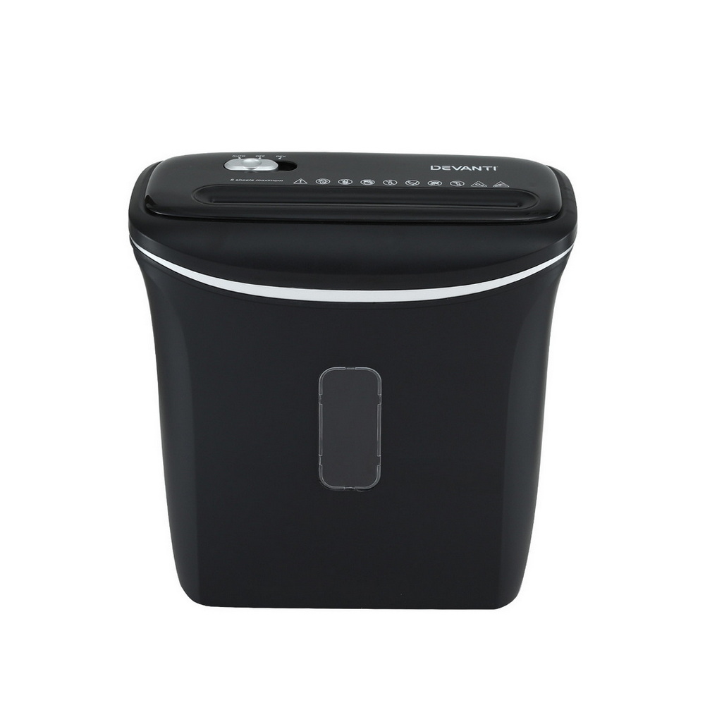 Secure your information with the Devanti cross-cut shredder. Capable of shredding up to 8 A4 sheets and credit cards at once, it features a 12L bin with viewing window, reverse function, auto safety stop, and overheat protection. With 2 minutes of continuous use, it’s perfect for both home and office.