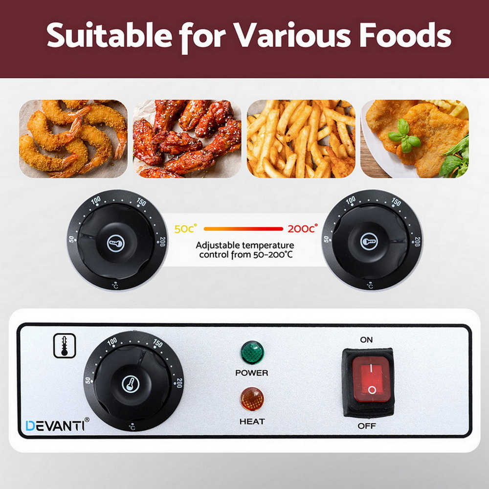 Whether you need a stainless steel fryer for family meals, a commercial fryer for snacks, or a reliable 10L fryer for events, the Devanti fryer is the great choice for fast, safe, and delicious frying.