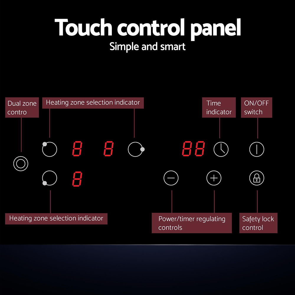 Devanti Electric Ceramic Cooktop 60cm Kitchen Cooker 4 Burner Hob Touch Control 5200W