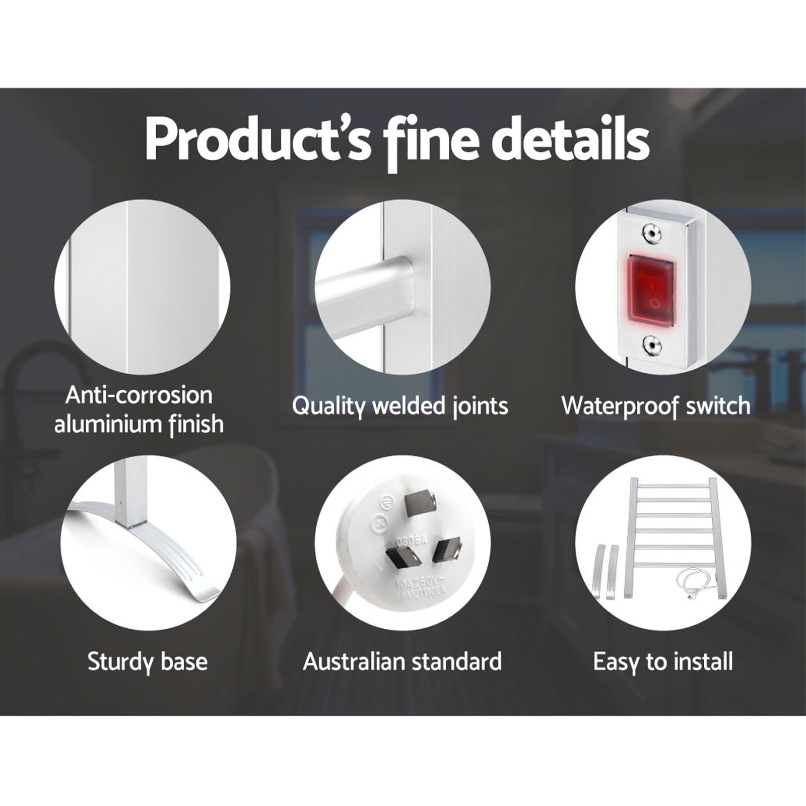 Devanti Electric Heated Towel Rail Rack 6 Bars Freestanding Clothes Dry Warmer