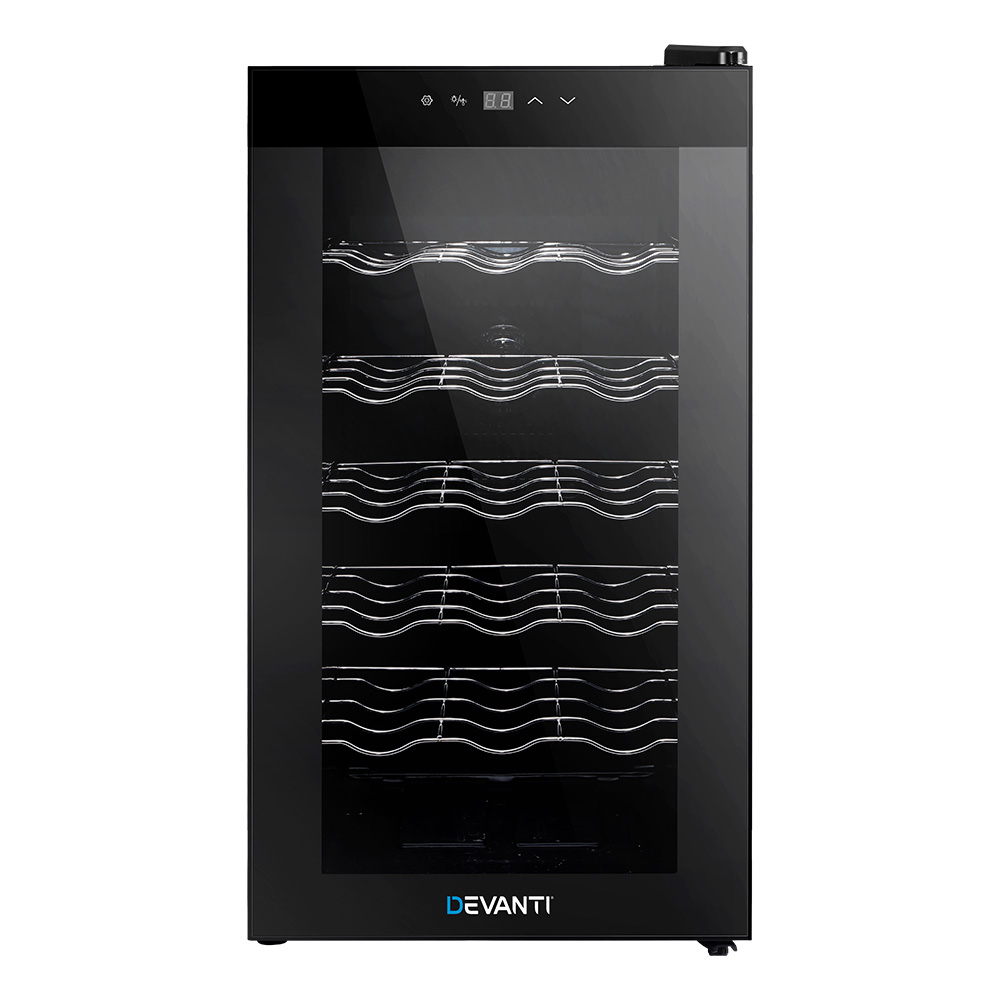 Need a good and reliable wine cooler? Look no further than our Devanti Wine Cooler. Utilising the latest high precision thermoelectric cooling technology, our wine cooler ensures your favourite vintages are kept at their prescribed temperatures with its circulated cool air. The touch control panel makes for easy temperature adjustments and the built-in interior LEDs help you to see your wines in the best light. The stylish and compact design stores up to 18 bottles of wine in a neat and tidy shelving system. Better still, the double-glazed glass door is UV-resistant and provides excellent insulation along with the 30mm thick foam wall. The ensemble works quietly and efficiently and has a handy child-lock on its control panel for total peace of mind. Don’t trust just any product with your precious vintages, trust Devanti.