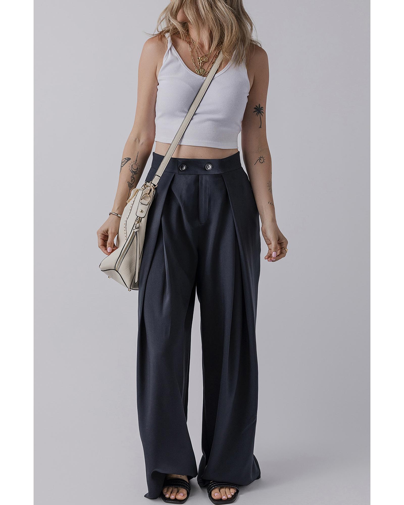 Dirty blue Dual Buttoned High Waist Pleated Wide Leg Pants – L
