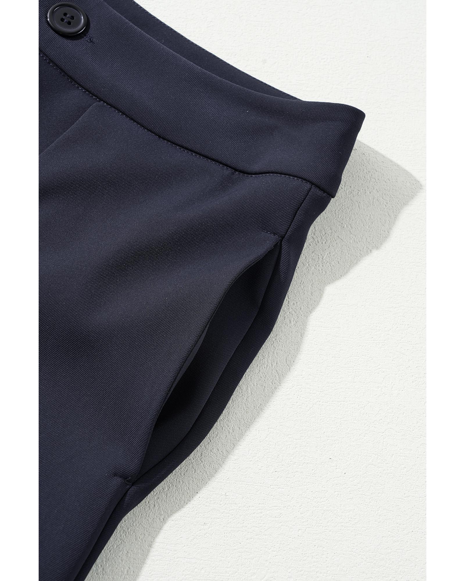 Dirty blue Dual Buttoned High Waist Pleated Wide Leg Pants - M