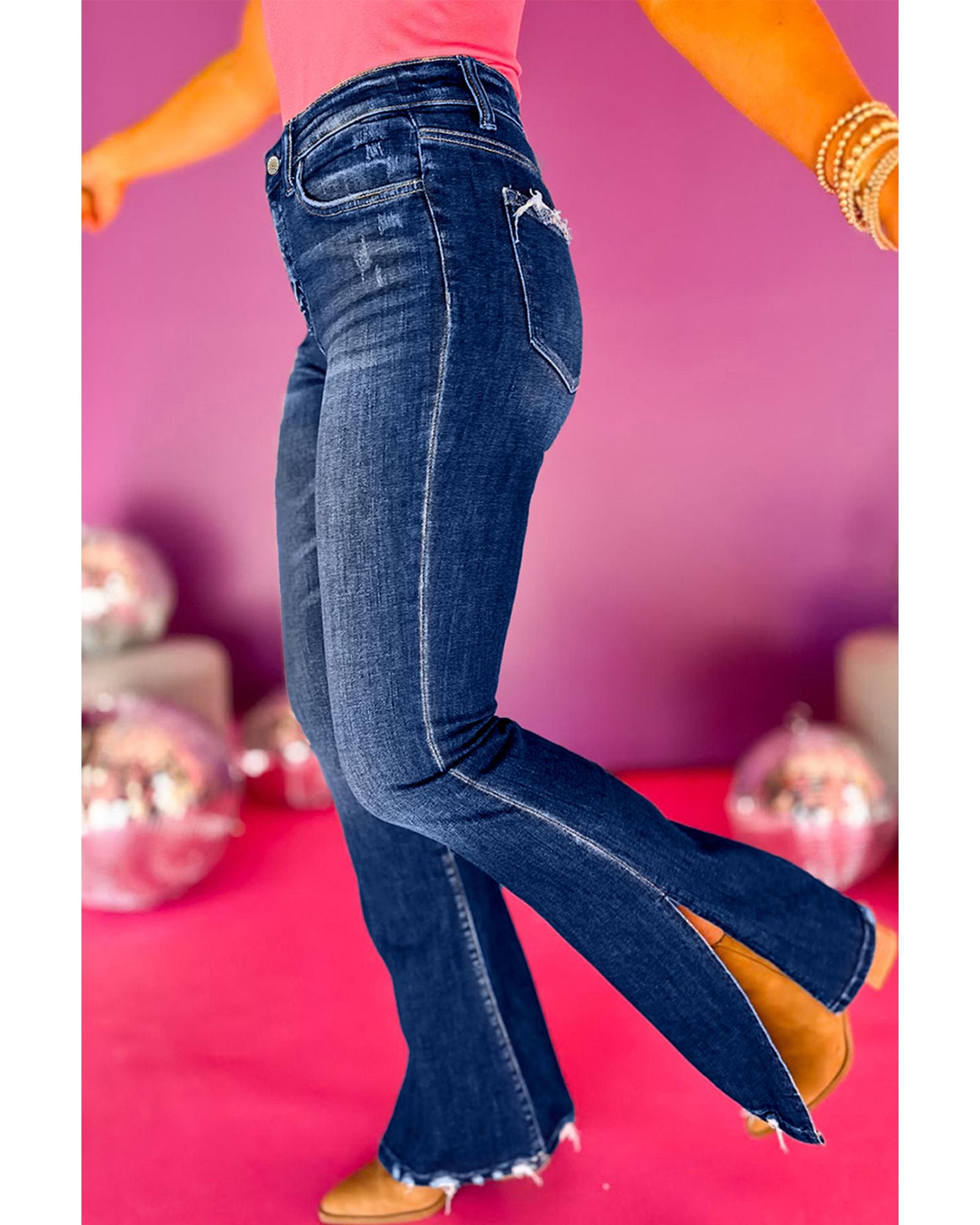 Dirty blue Plus Size High Waist Side Slits Flare Jeans – 1X