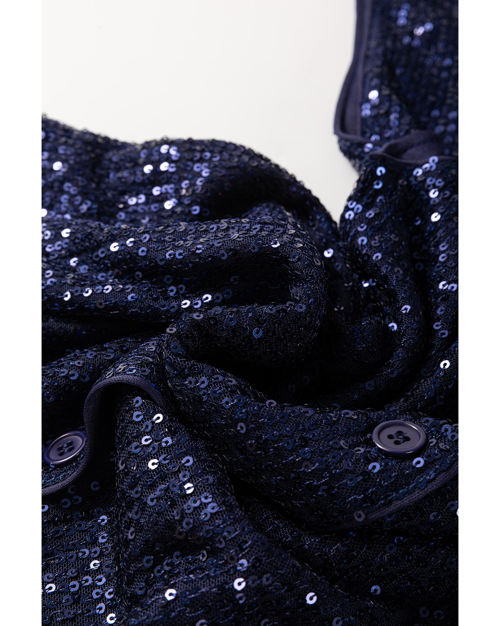 Dirty blue Sequined Deep V Neck Buttoned Tank Top – L