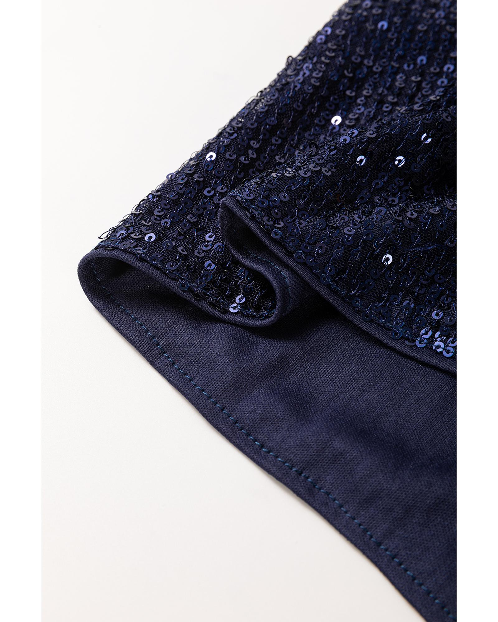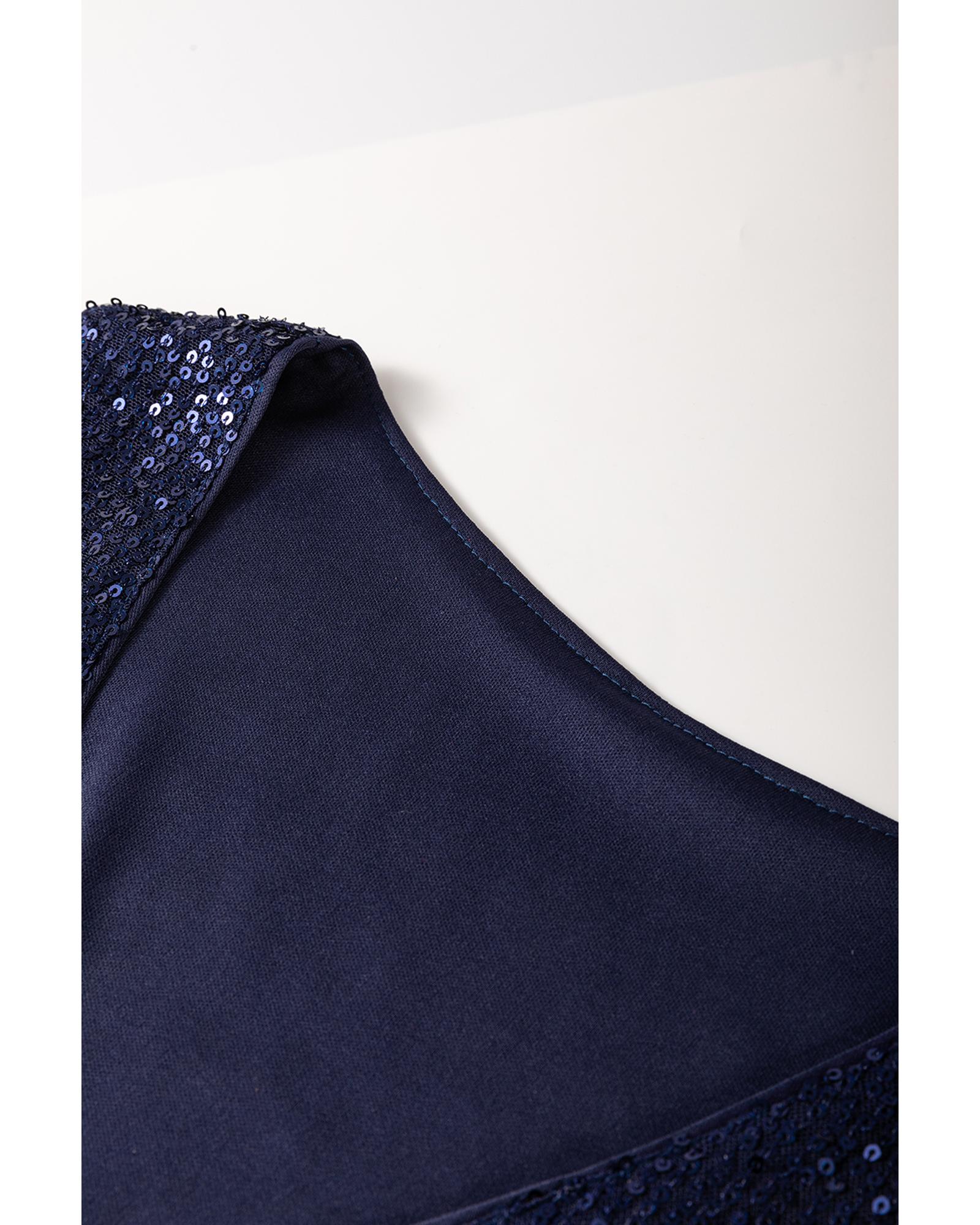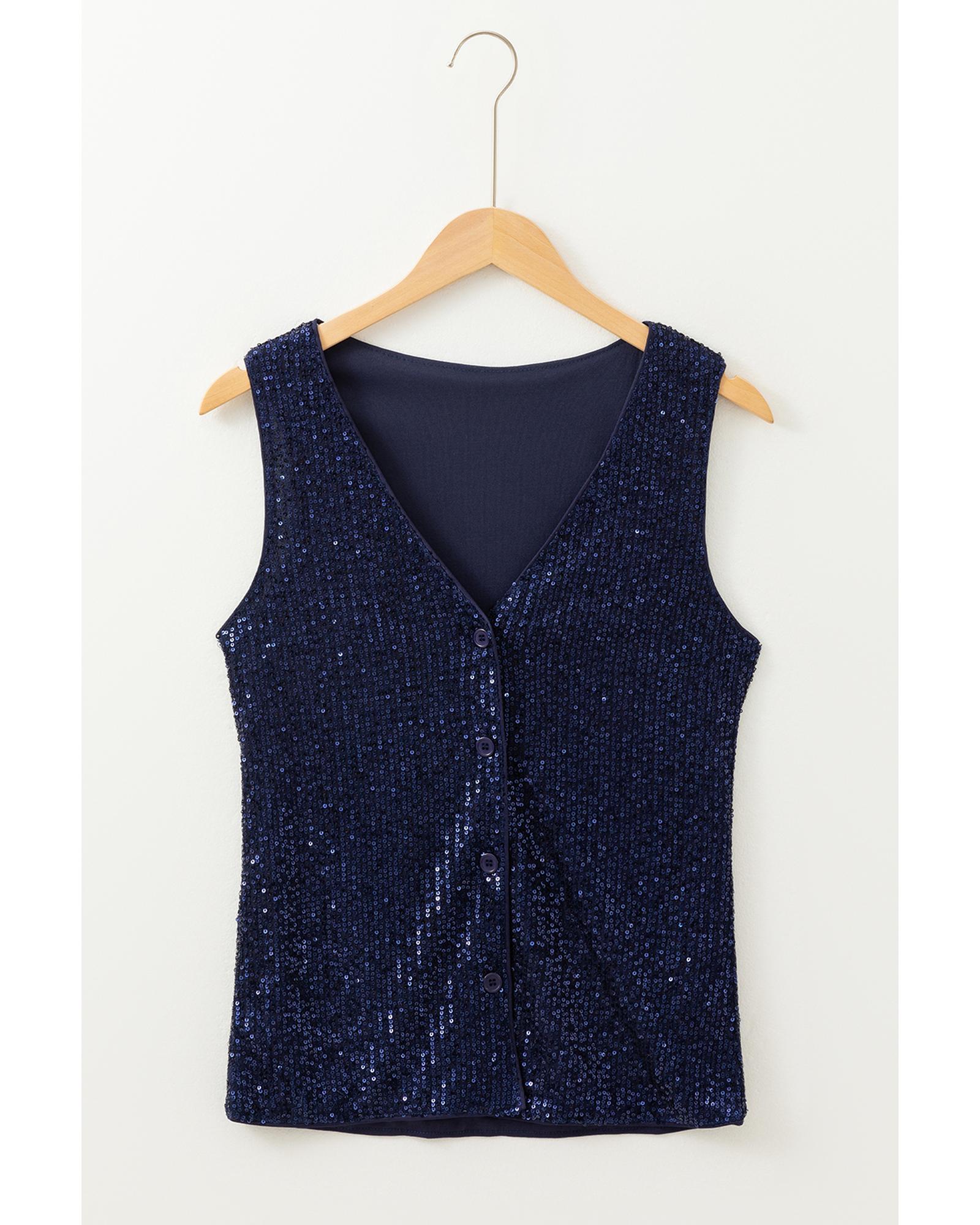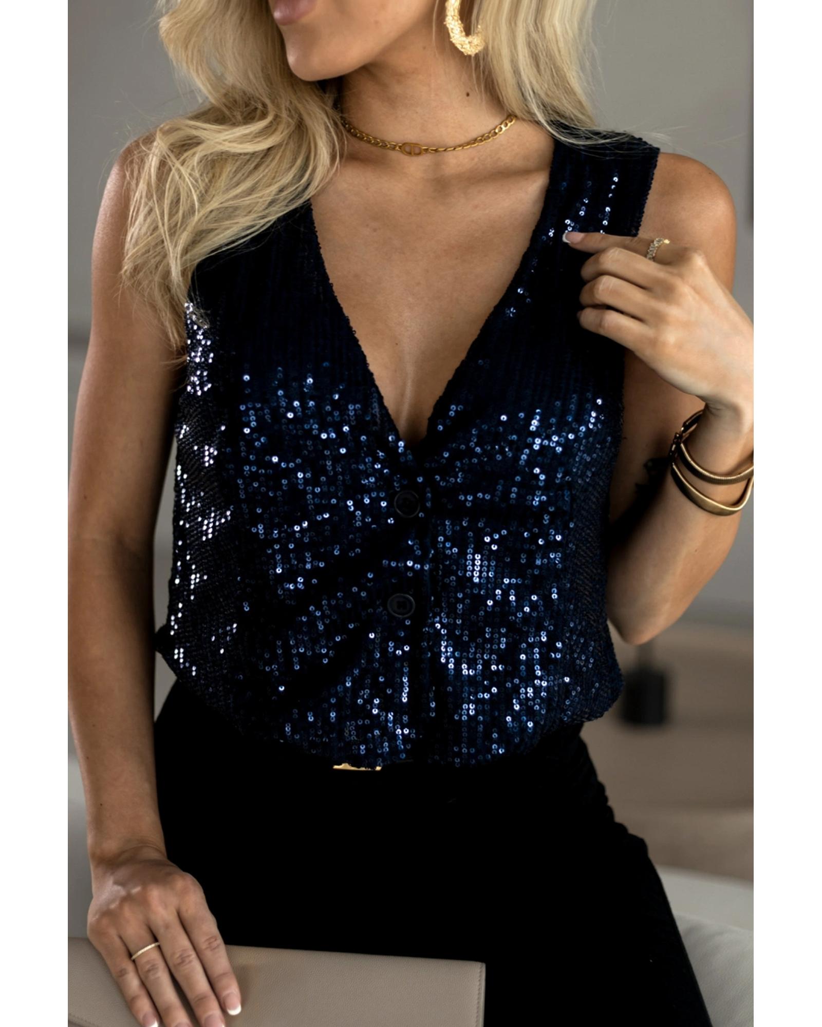 Dirty blue Sequined Deep V Neck Buttoned Tank Top – M