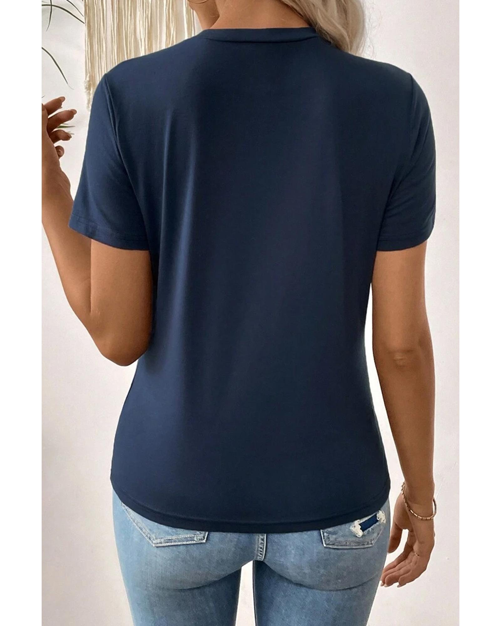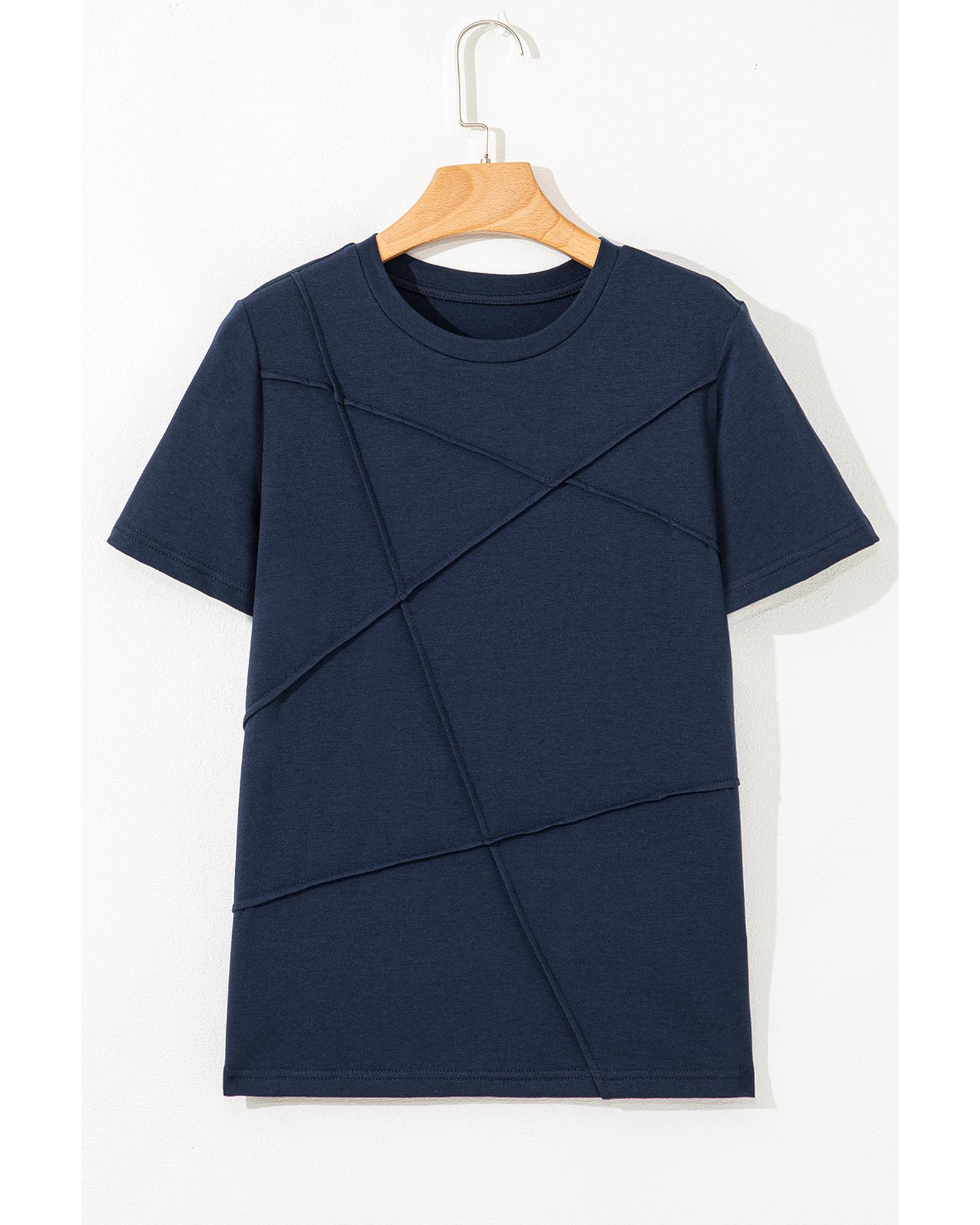 Dirty blue Solid Color Toothpick Stripe Round Neck T Shirt – L