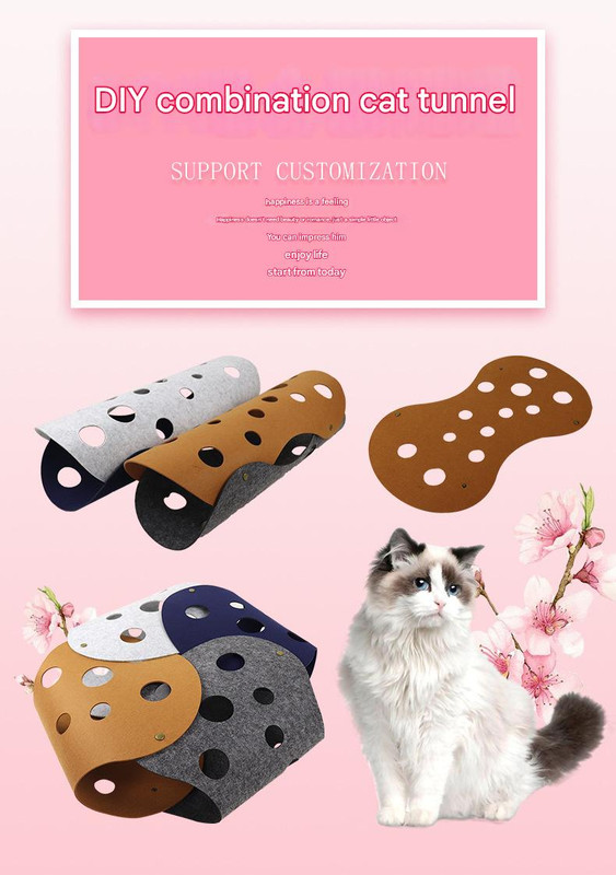 Keep your cat entertained with the DIY Felt Cat Tunnel, a versatile and engaging pet toy designed for hours of fun. Made from durable felt material, this tunnel features an egg roll-shaped design with multiple holes, encouraging your cat to explore, play, and hide. The customizable structure allows you to assemble it in various shapes, providing a fresh experience for your pet each time.