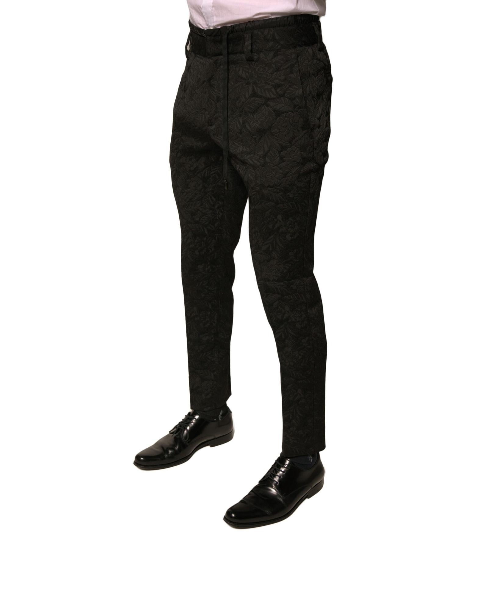 Dolce & Gabbana Men’s Black Brocade Polyester Skinny Dress Pants – 44 IT
