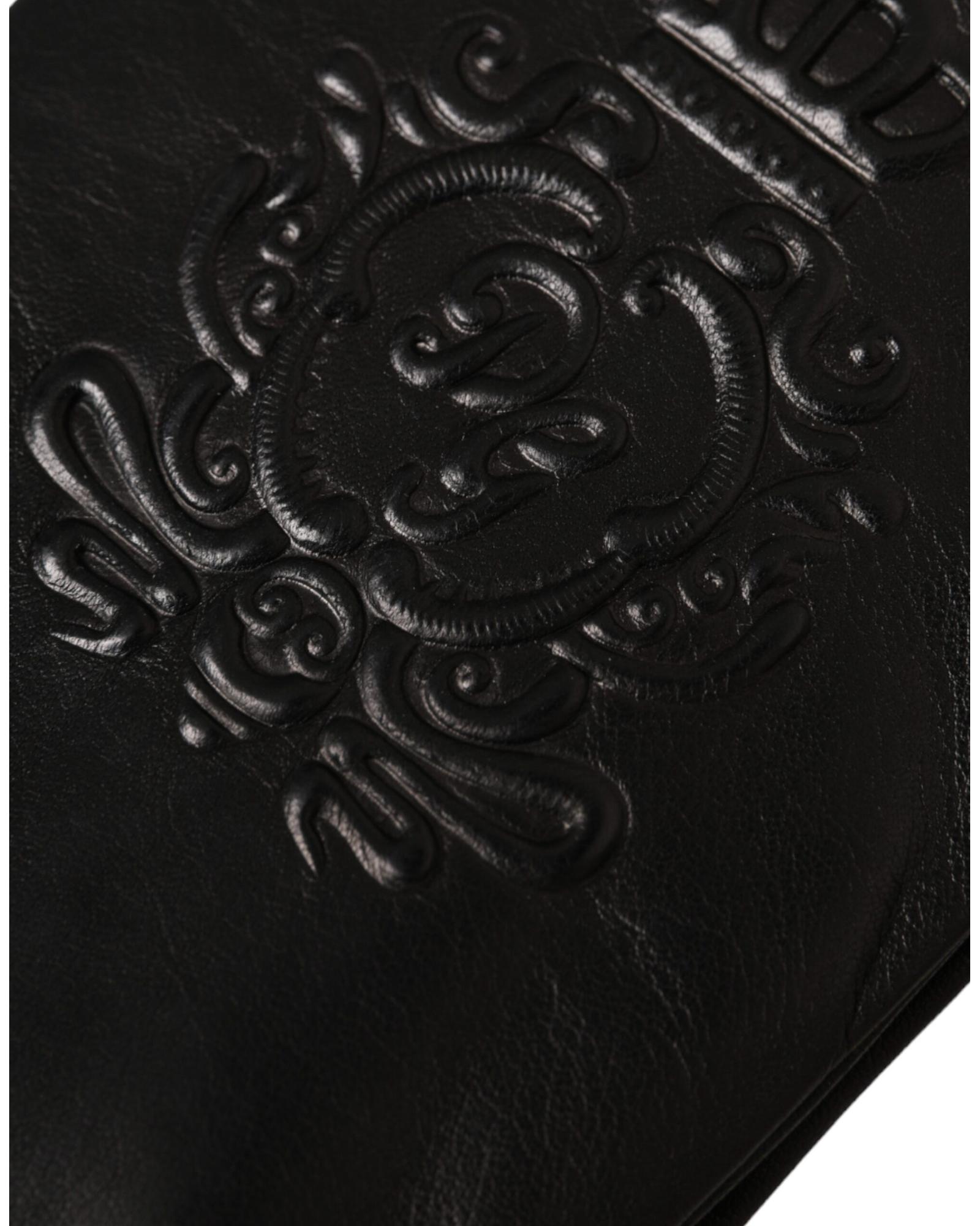 Dolce & Gabbana Men’s Black Leather Embossed Logo Short Hands Gloves – 10