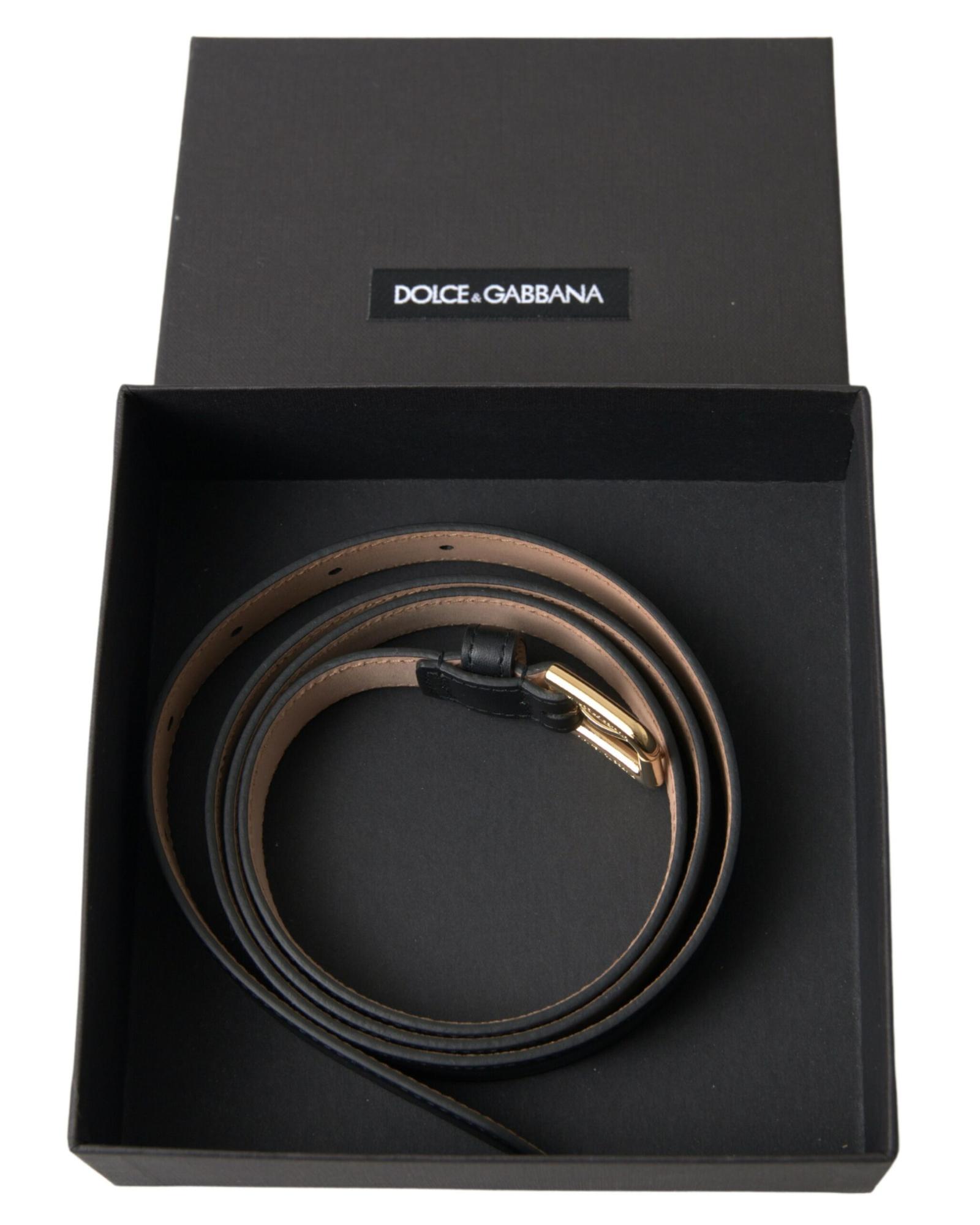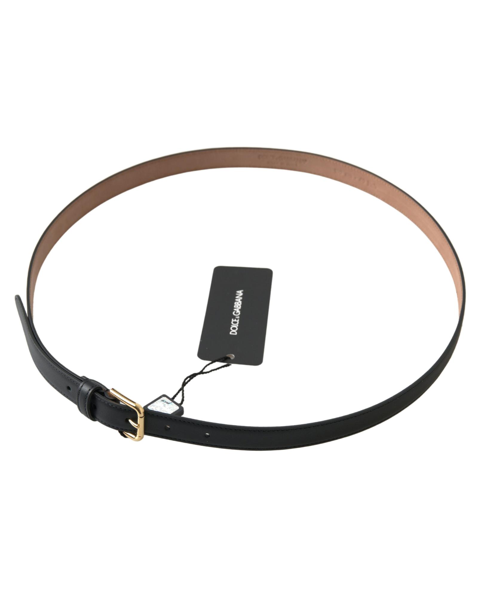 • 100% Authentic Dolce & Gabbana Black Leather Gold Tone Metal Buckle Belt