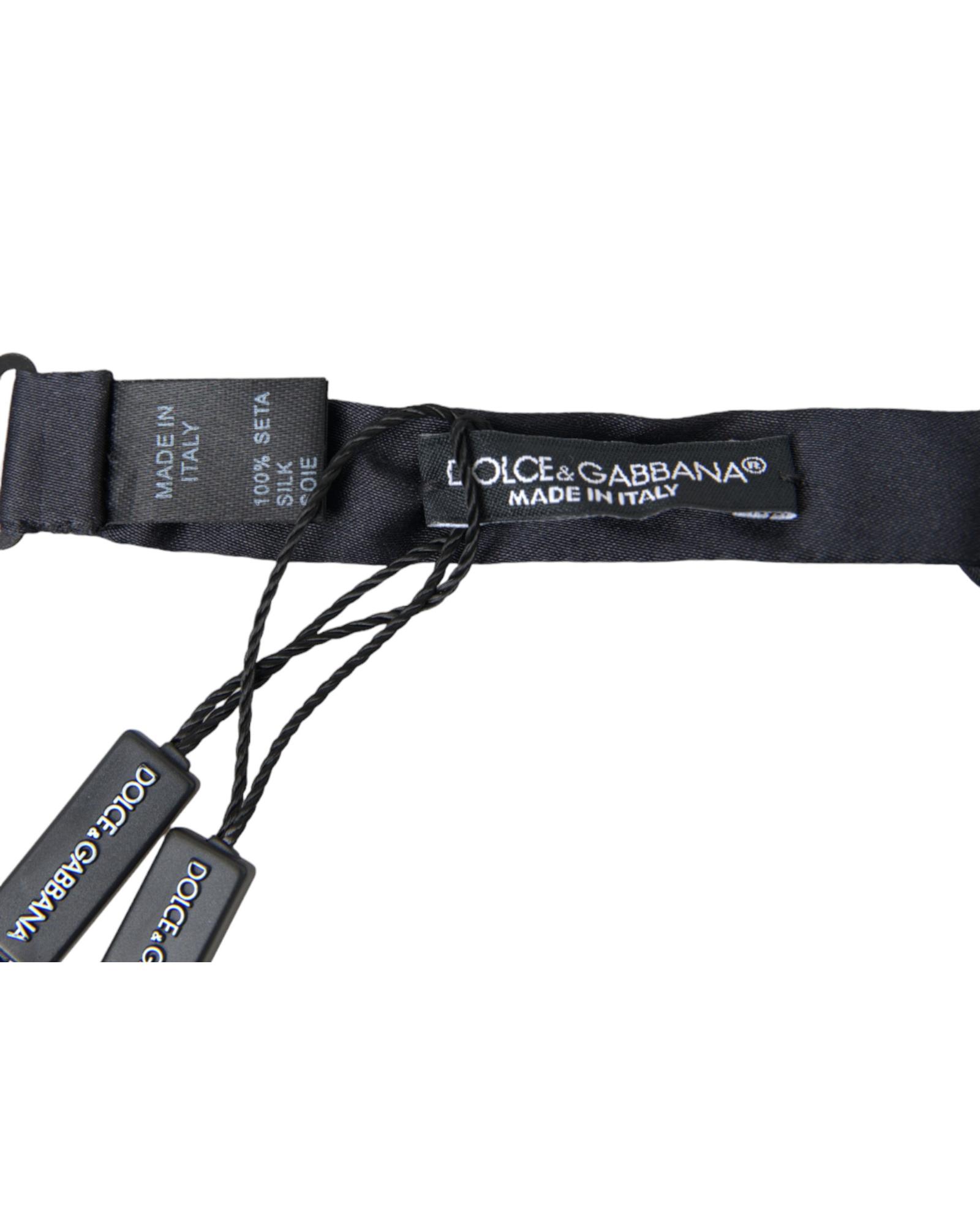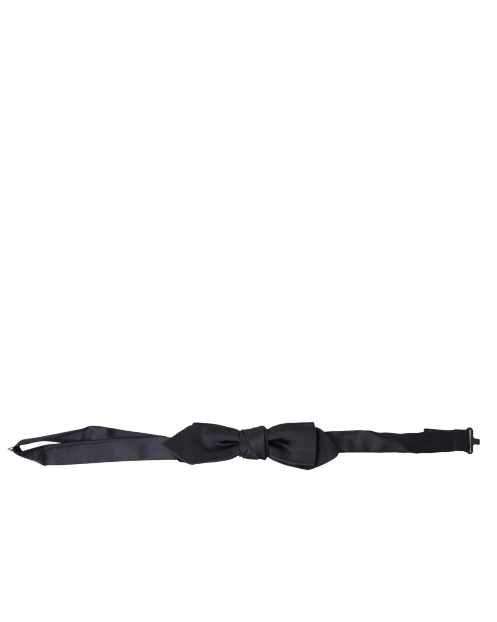Dolce & Gabbana Men’s Dark Blue Silk Satin Adjustable Neck Papillon Bow Tie – One Size