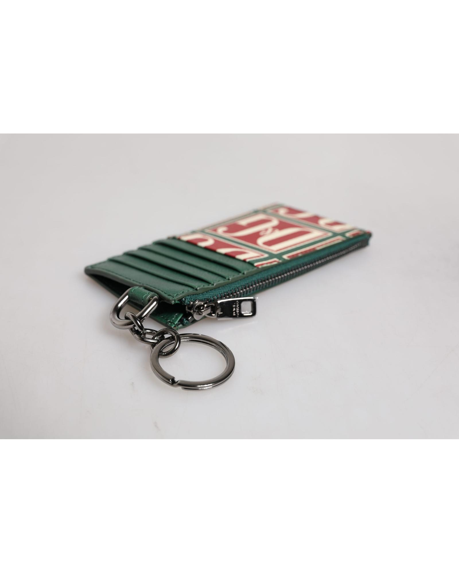 Dolce & Gabbana Men’s Green Calf Leather Logo Print Monogram Card Holder Wallet – One Size