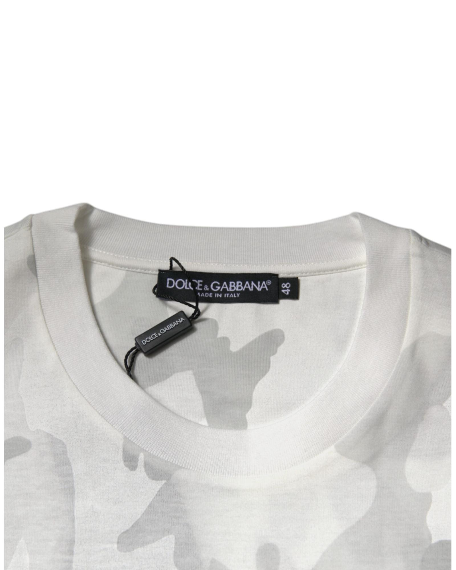 Dolce & Gabbana Men’s White Gray Camouflage Cotton Crew Neck T-shirt – 48 IT