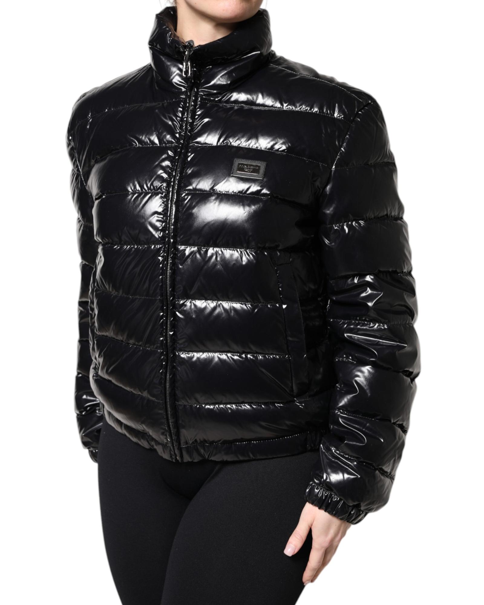 Dolce & Gabbana Women’s Black Logo Plaque Full Zip Puffer Jacket – 42 IT