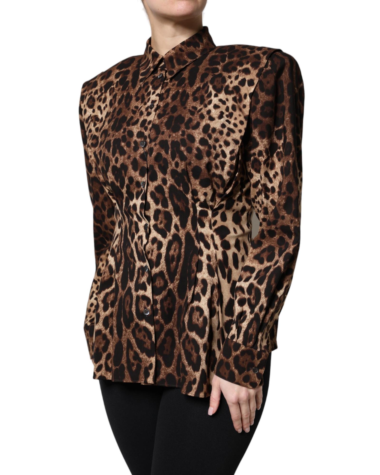 Dolce & Gabbana Women’s Brown Leopard Silk Button Down Coat Jacket – 42 IT
