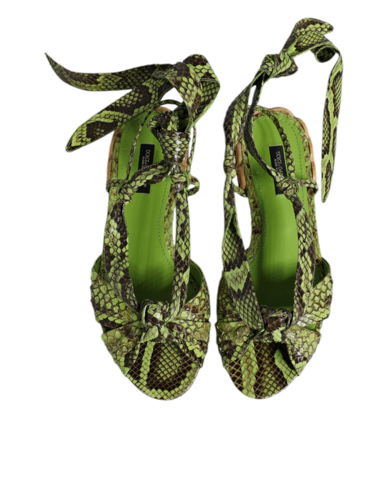 Dolce & Gabbana Women’s Green Animal Print Ankle Wrap Sandals Shoes – 36.5 EU