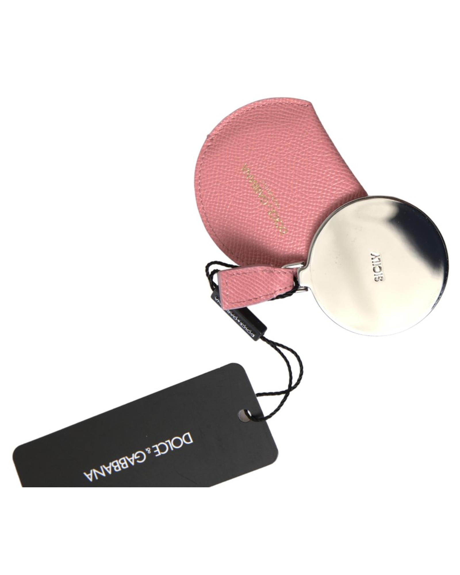 Dolce & Gabbana Women’s Pink Calfskin Leather Round Mirror Holder – One Size