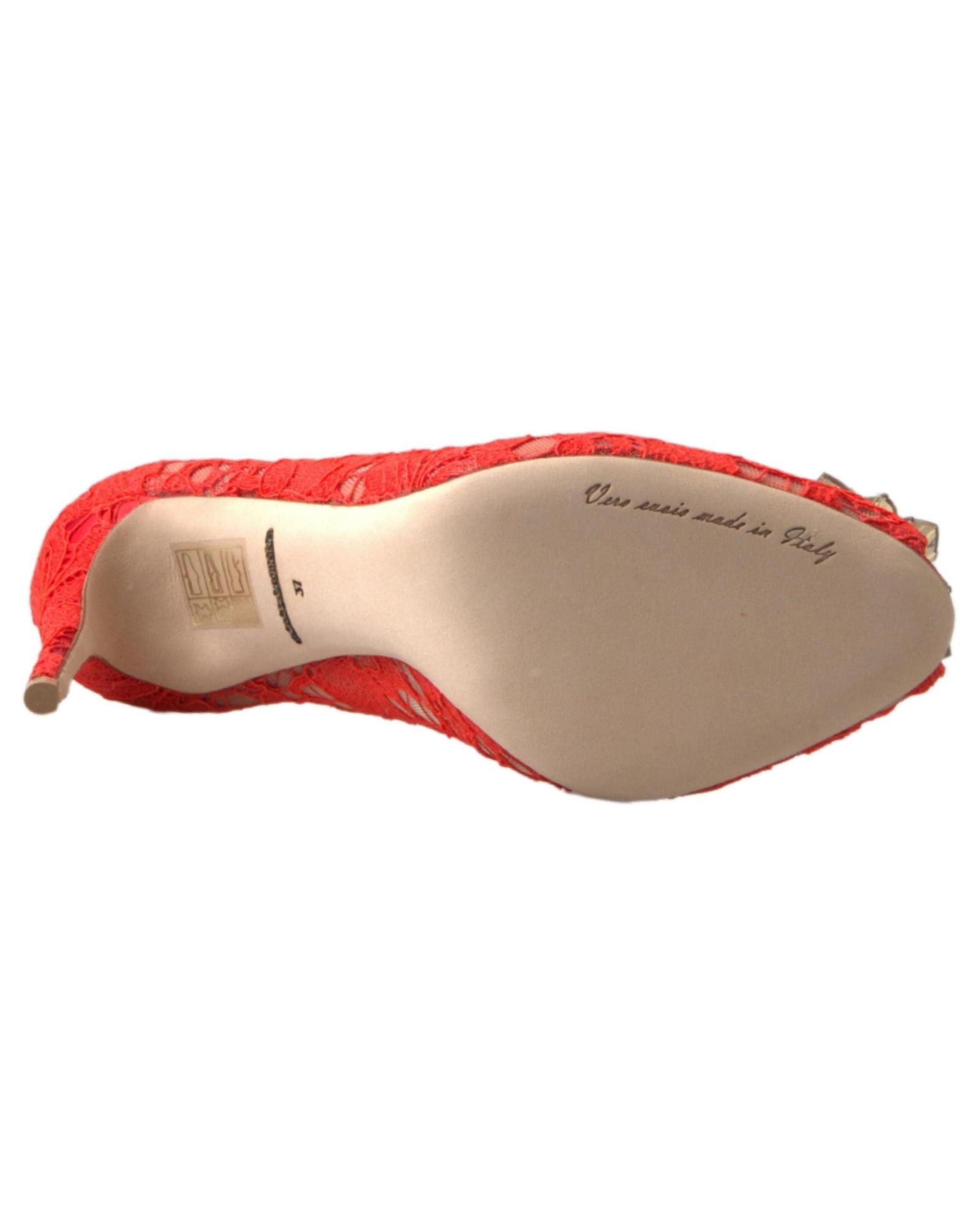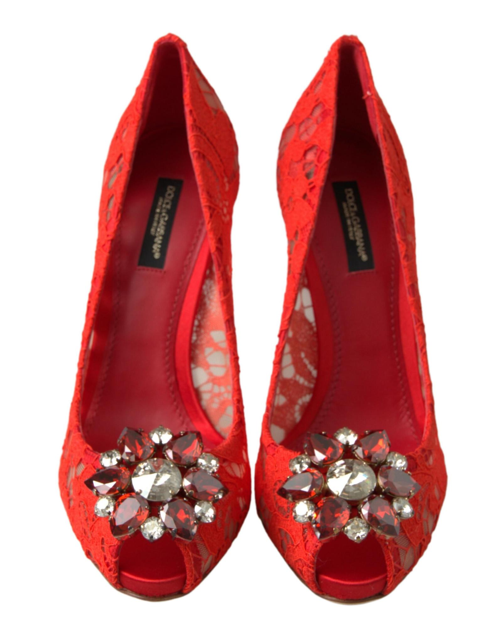 Dolce & Gabbana Women's Red Taormina Lace Crystal Heels Pumps Shoes - 36.5 EU