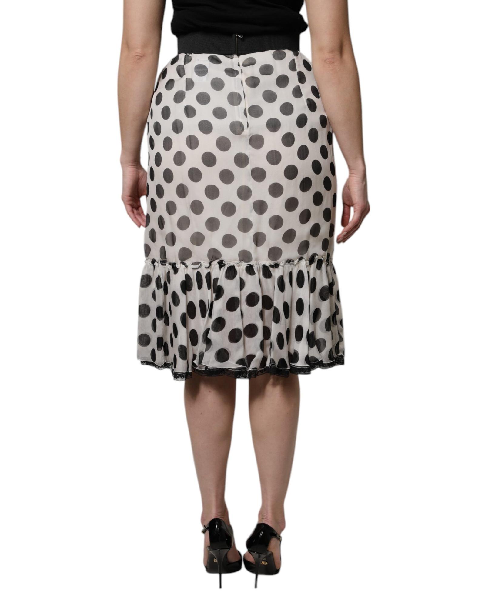 Dolce & Gabbana Women's White Black Polka Dots Knee Length Skirt - 38 IT