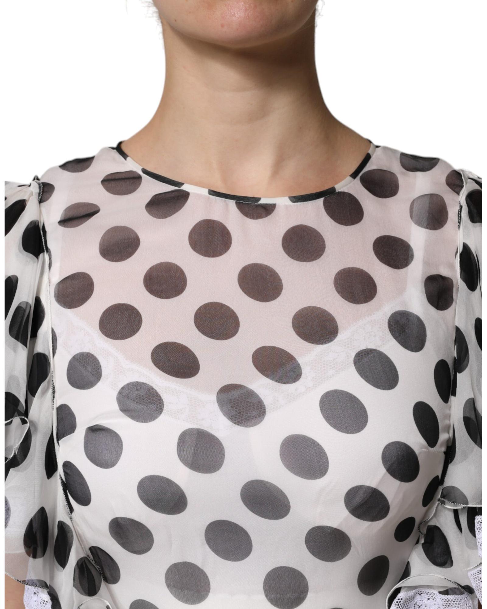 Dolce & Gabbana Women’s White Polka Dotted Silk Blend A-line Dress – 36 IT
