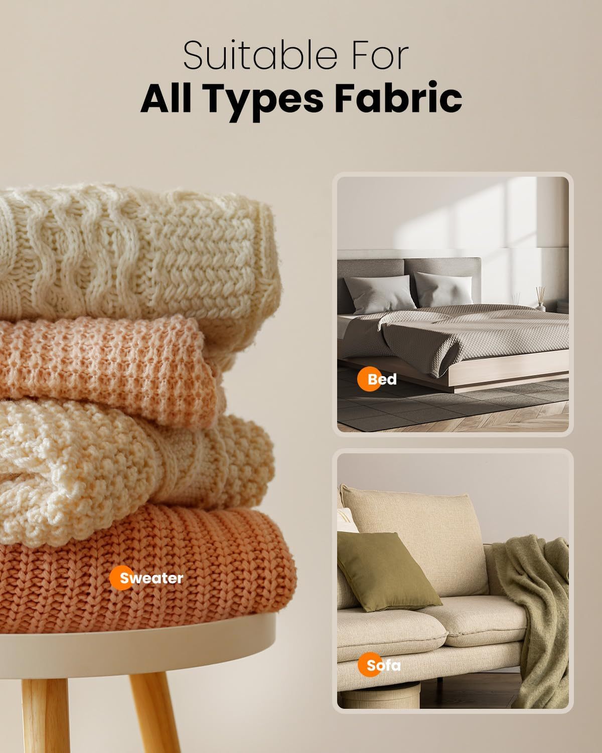 • Versatile Use: Suitable for a wide range of fabrics including clothing (sweaters, coats), upholstery (sofas), bedding, and more.