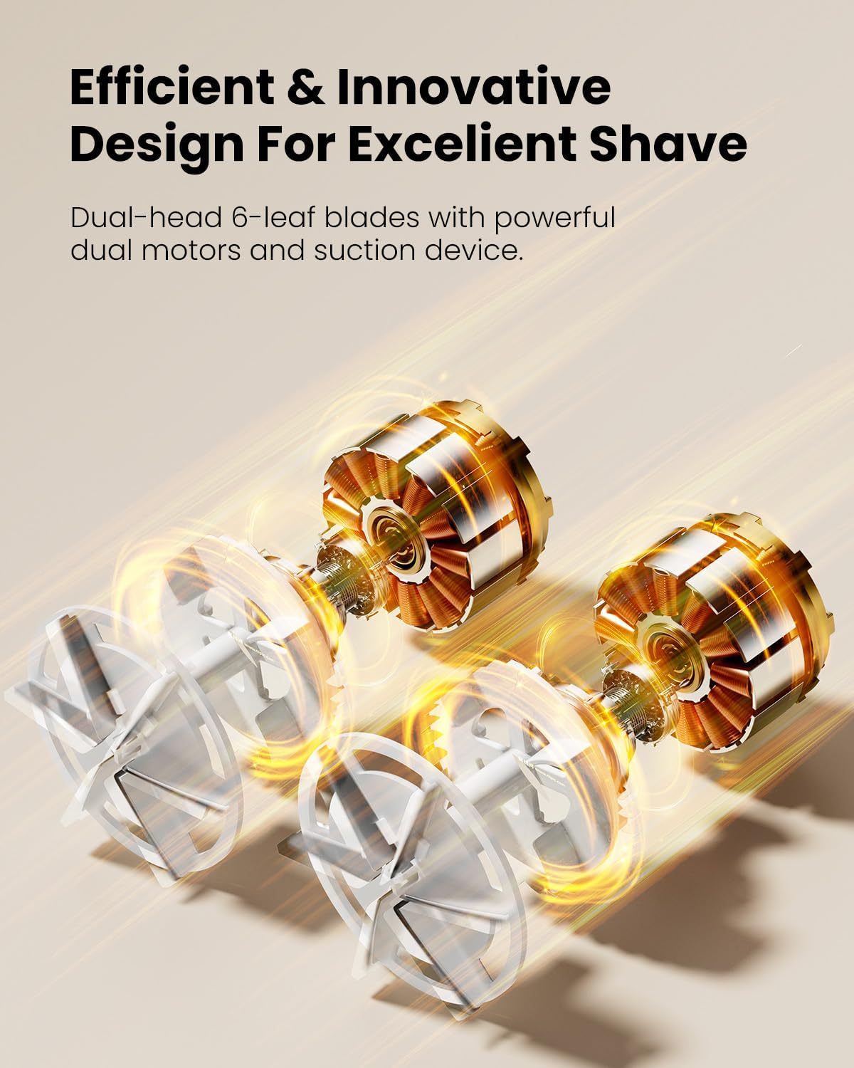 • Design: Dual-Head, Dual Motor, Dual 6-Leaf Blades
