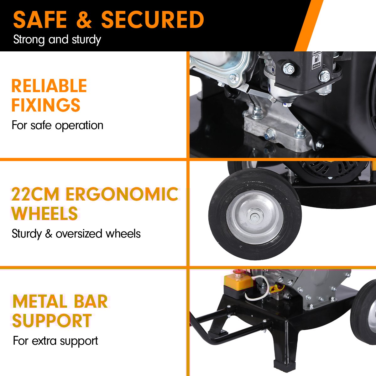The rugged steel hopper stands at 112cm high, so yard waste can be dropped in with minimal effort. Compost your small trees, leaves and branches with this wood chipper.