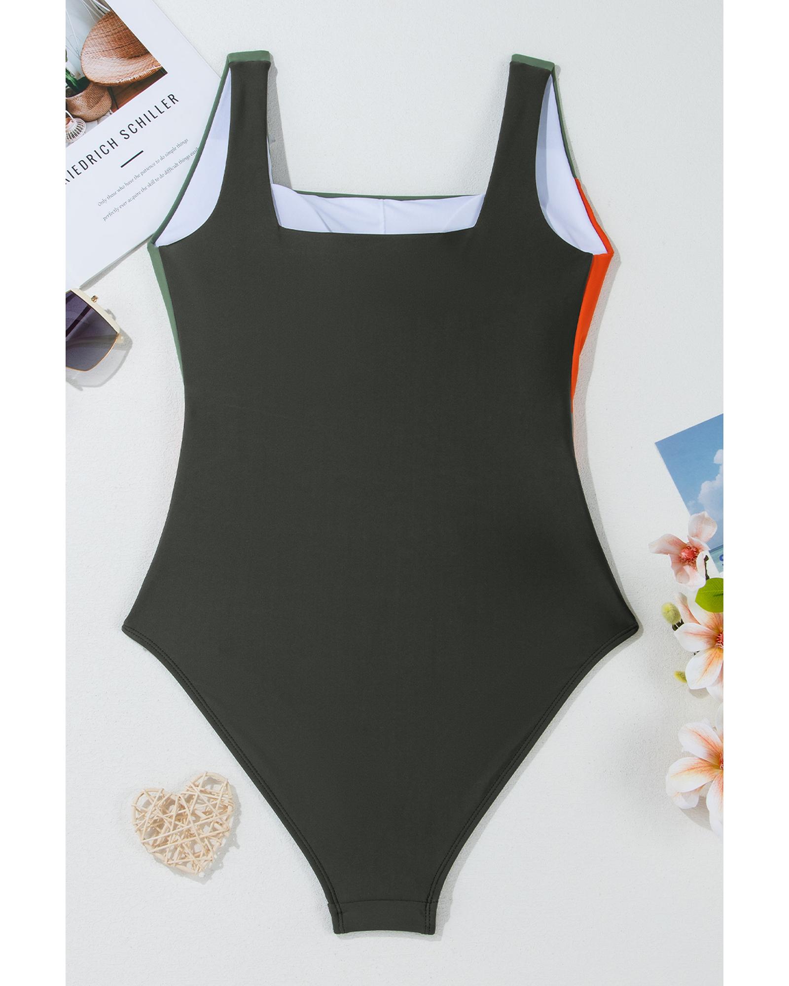 Duffel Green Color Block Padded Square Neck One Piece Swimsuit – M