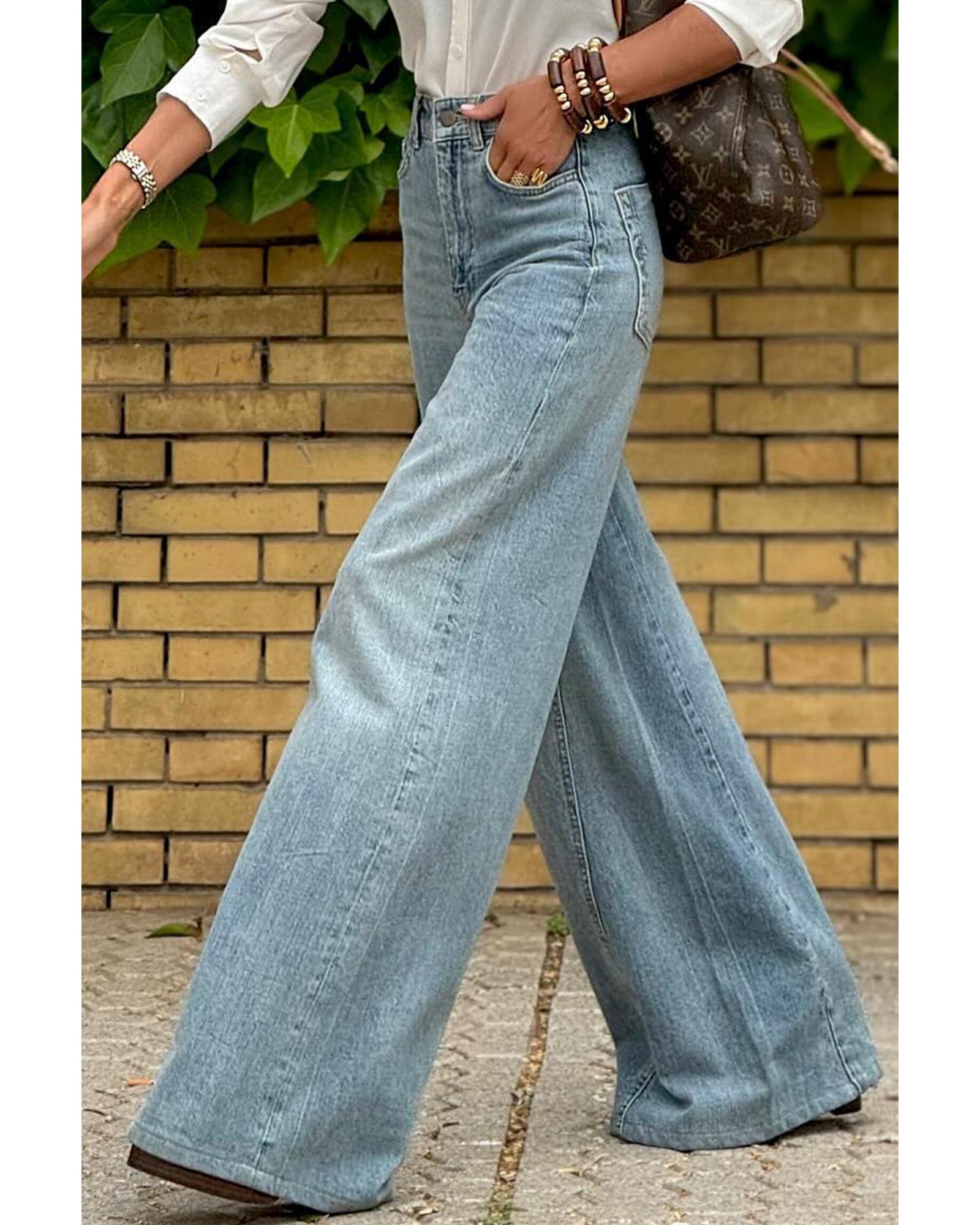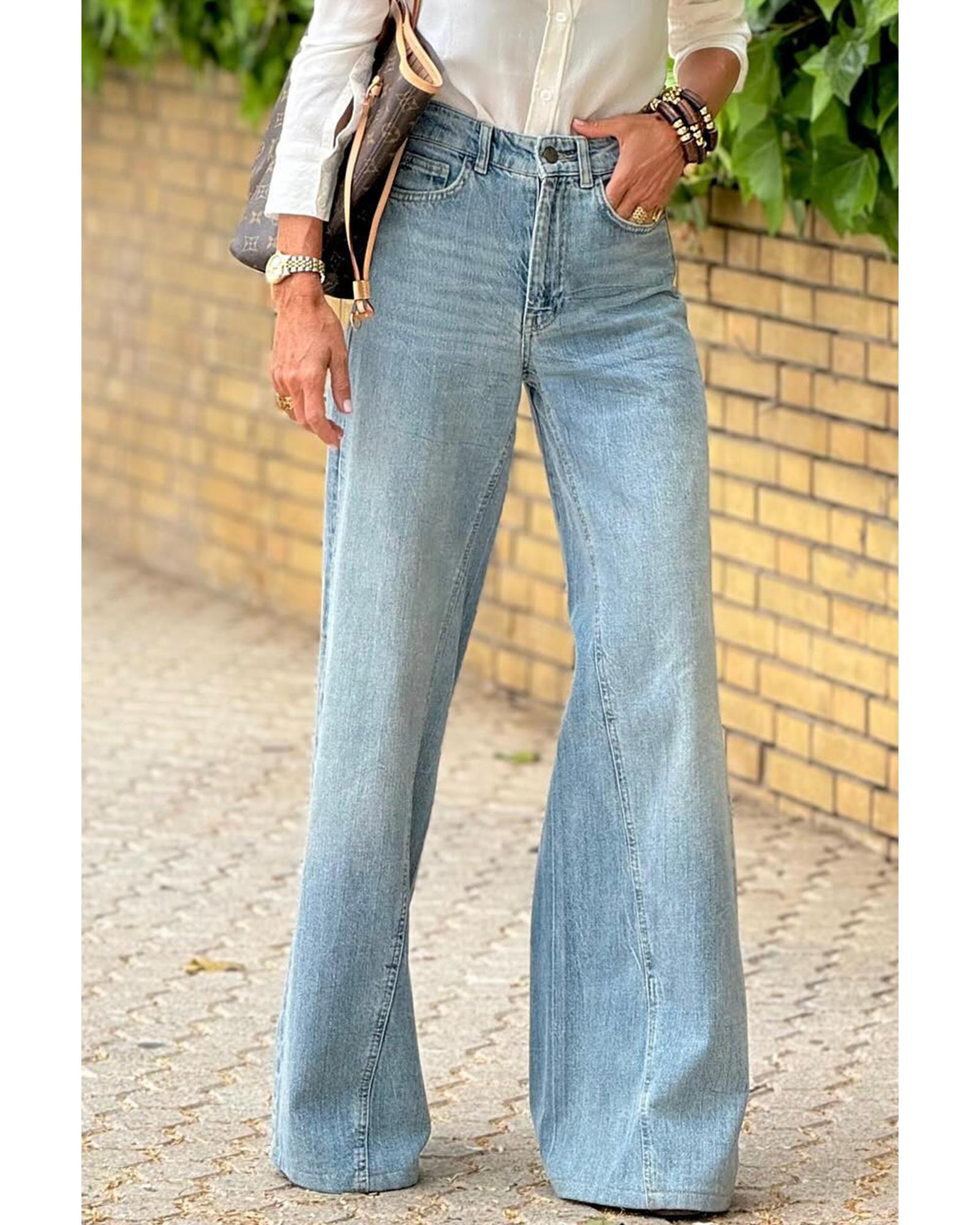 Dusk Blue Acid Wash Extra Wide Leg High Waist Long Jeans - 16 US