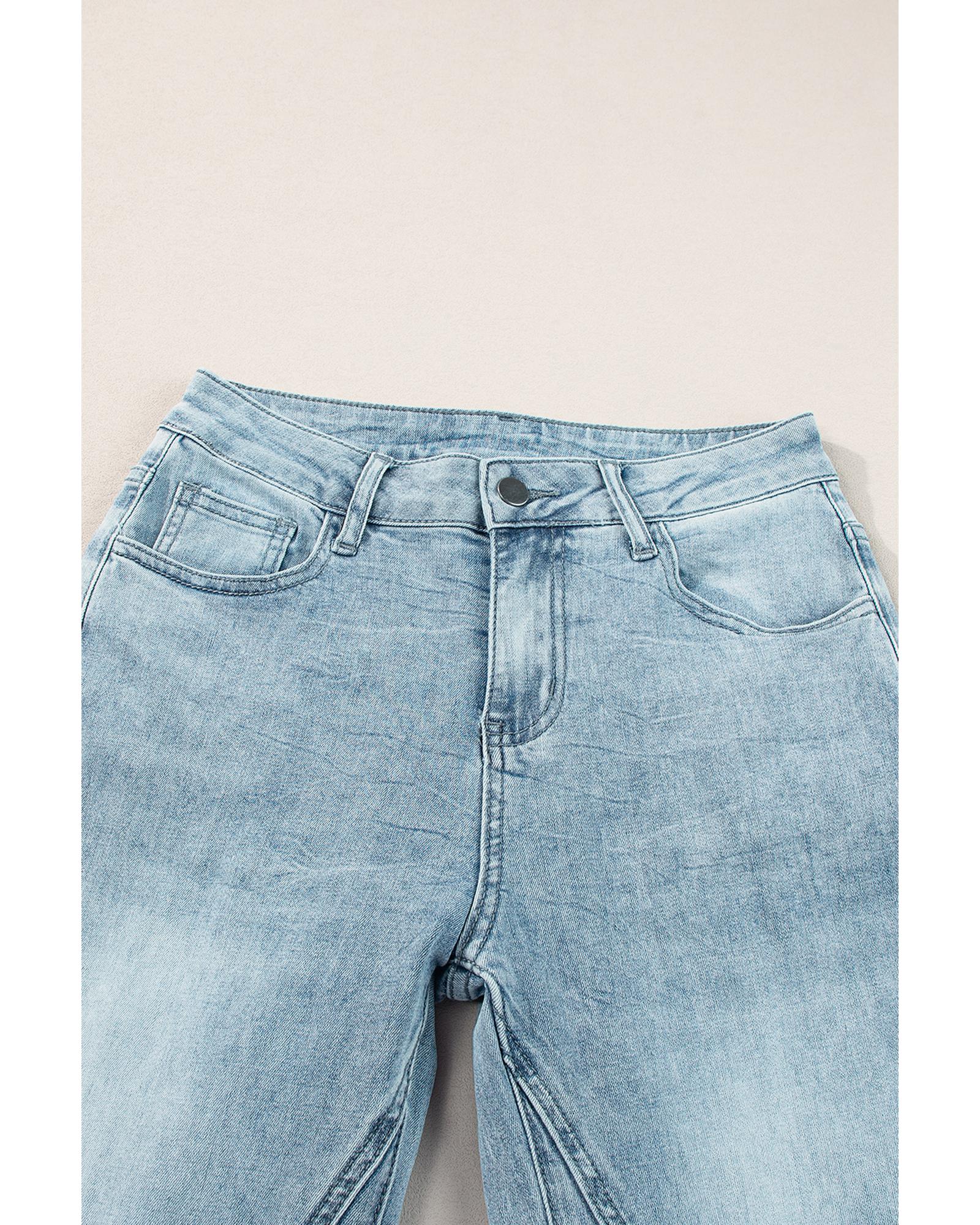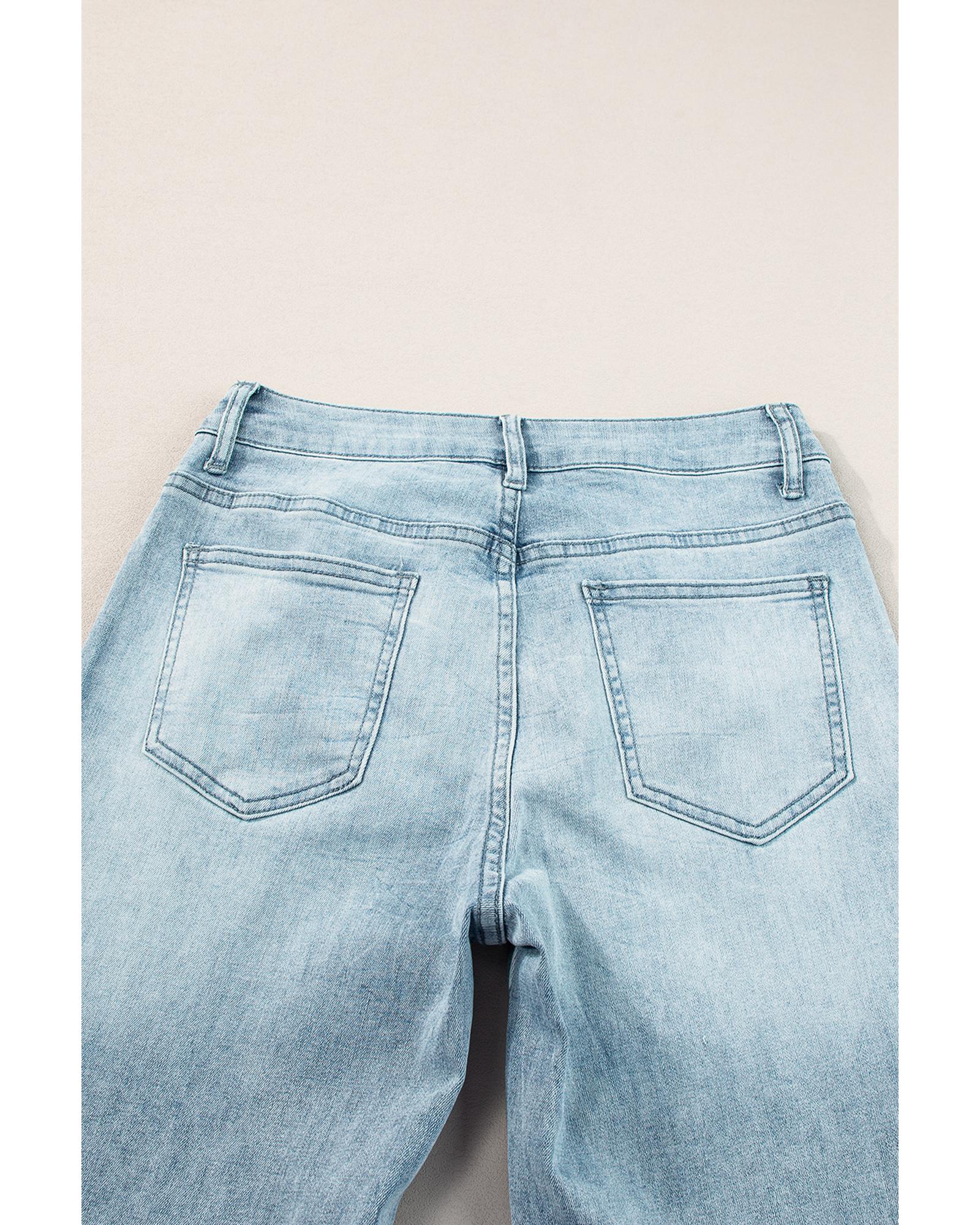 Sky Blue Sequin Embellished Fringe Distressed Denim Jacket - S