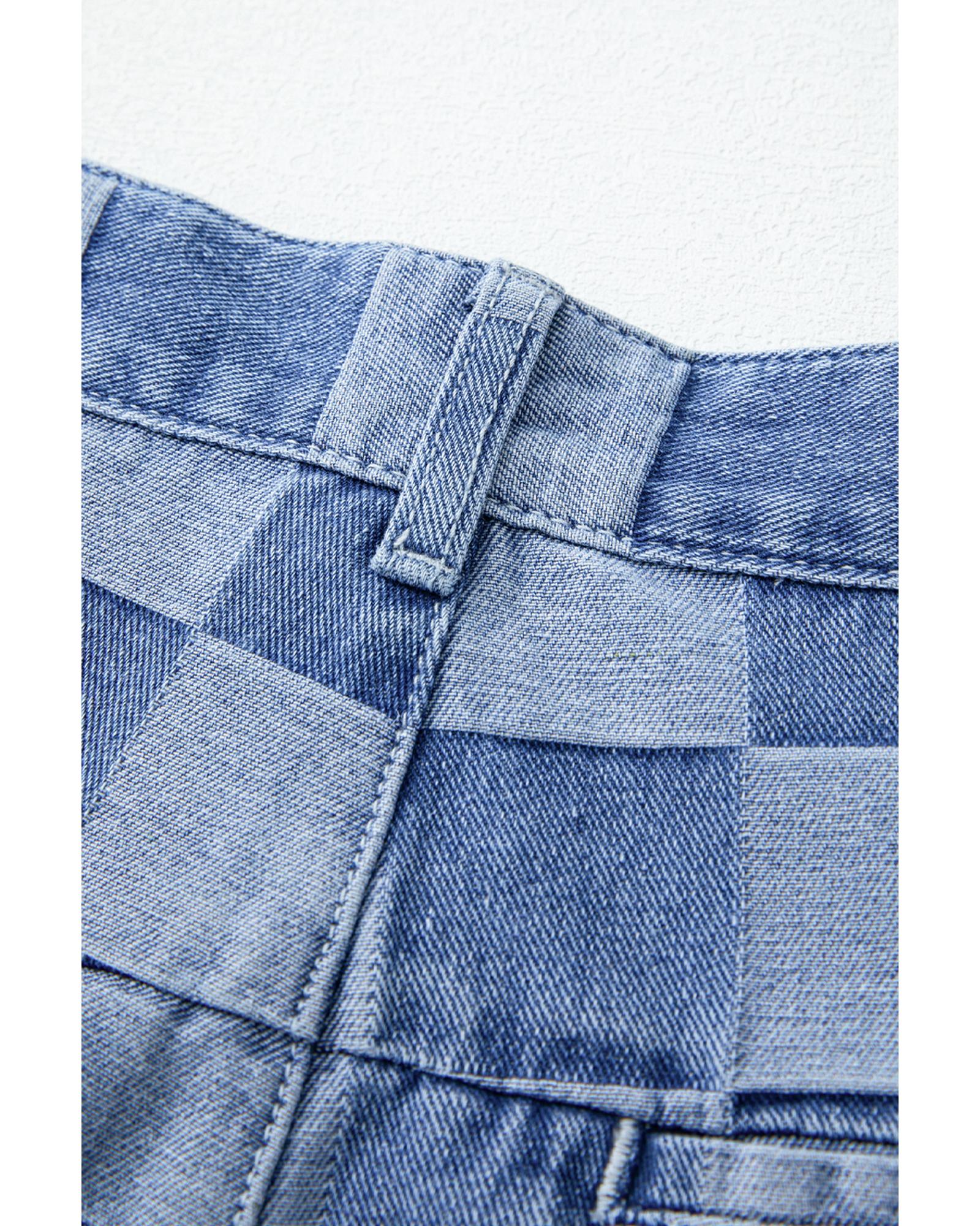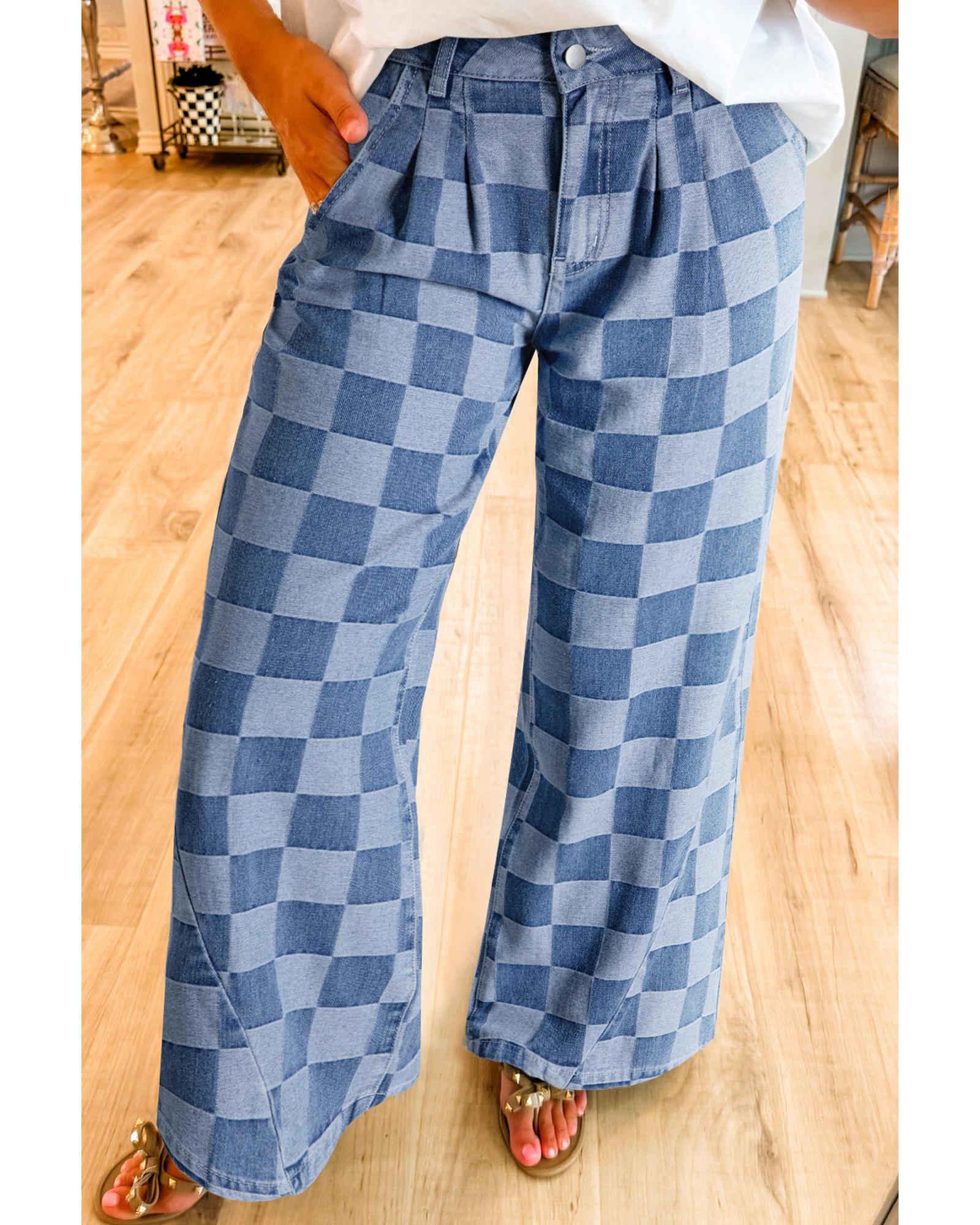 Dusk Blue Checkered Denim Wide Leg Jeans – 4 US