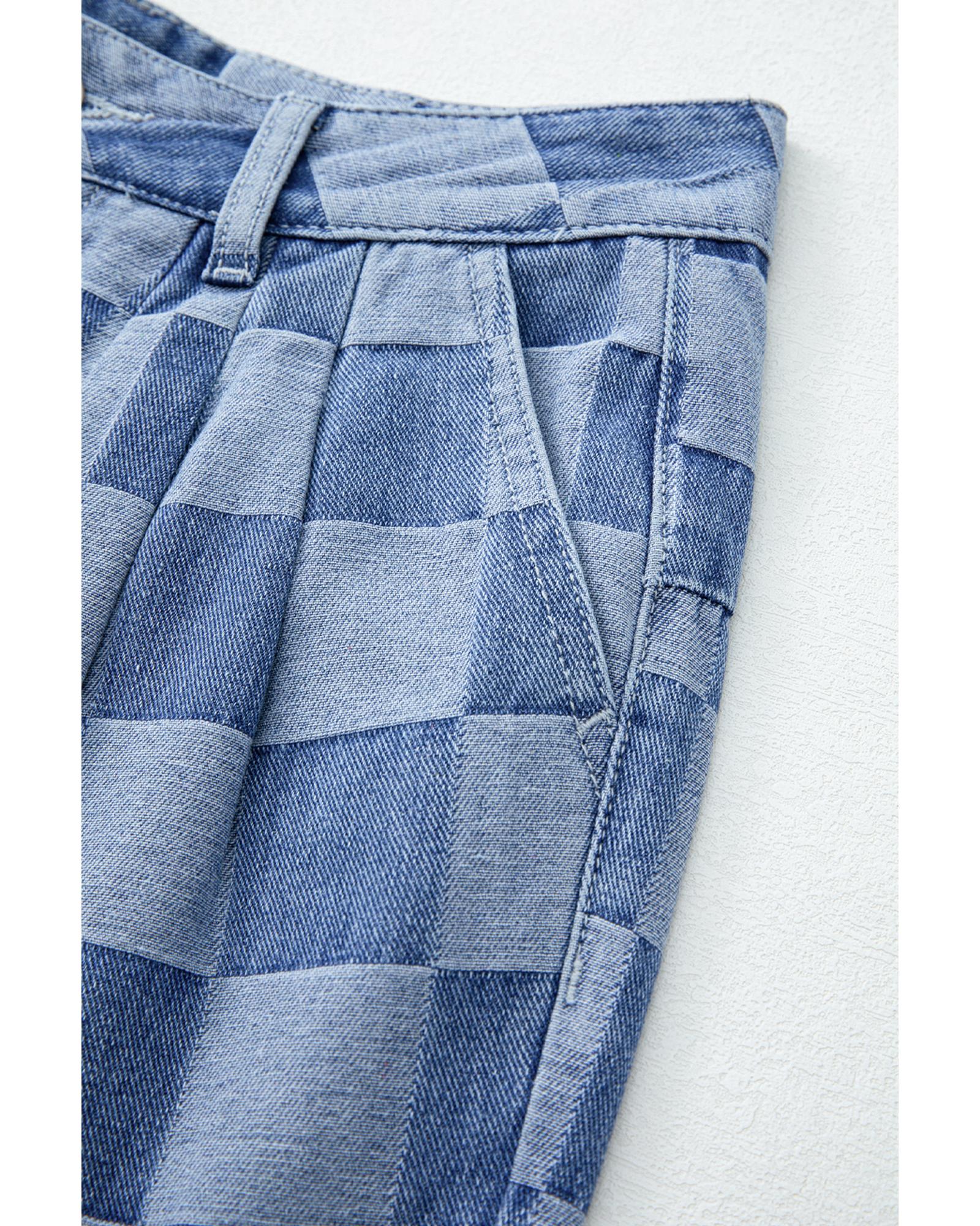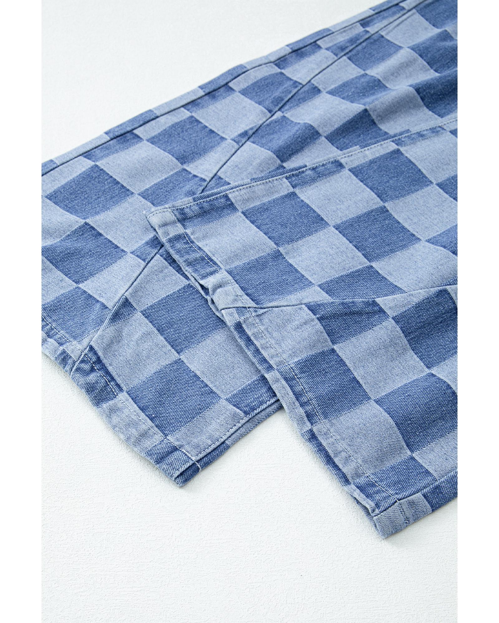 Dusk Blue Checkered Denim Wide Leg Jeans – 8 US