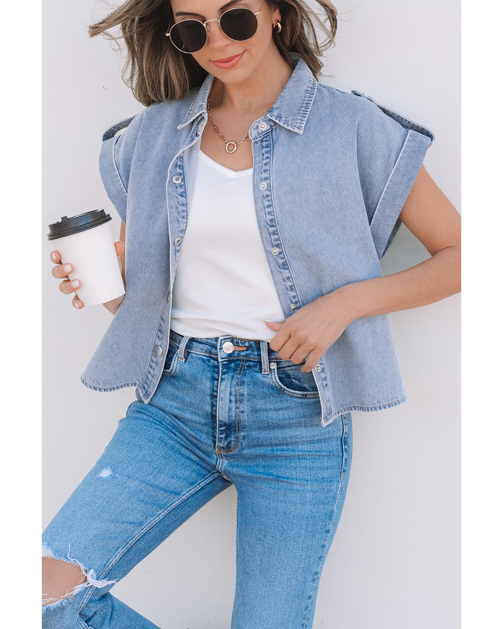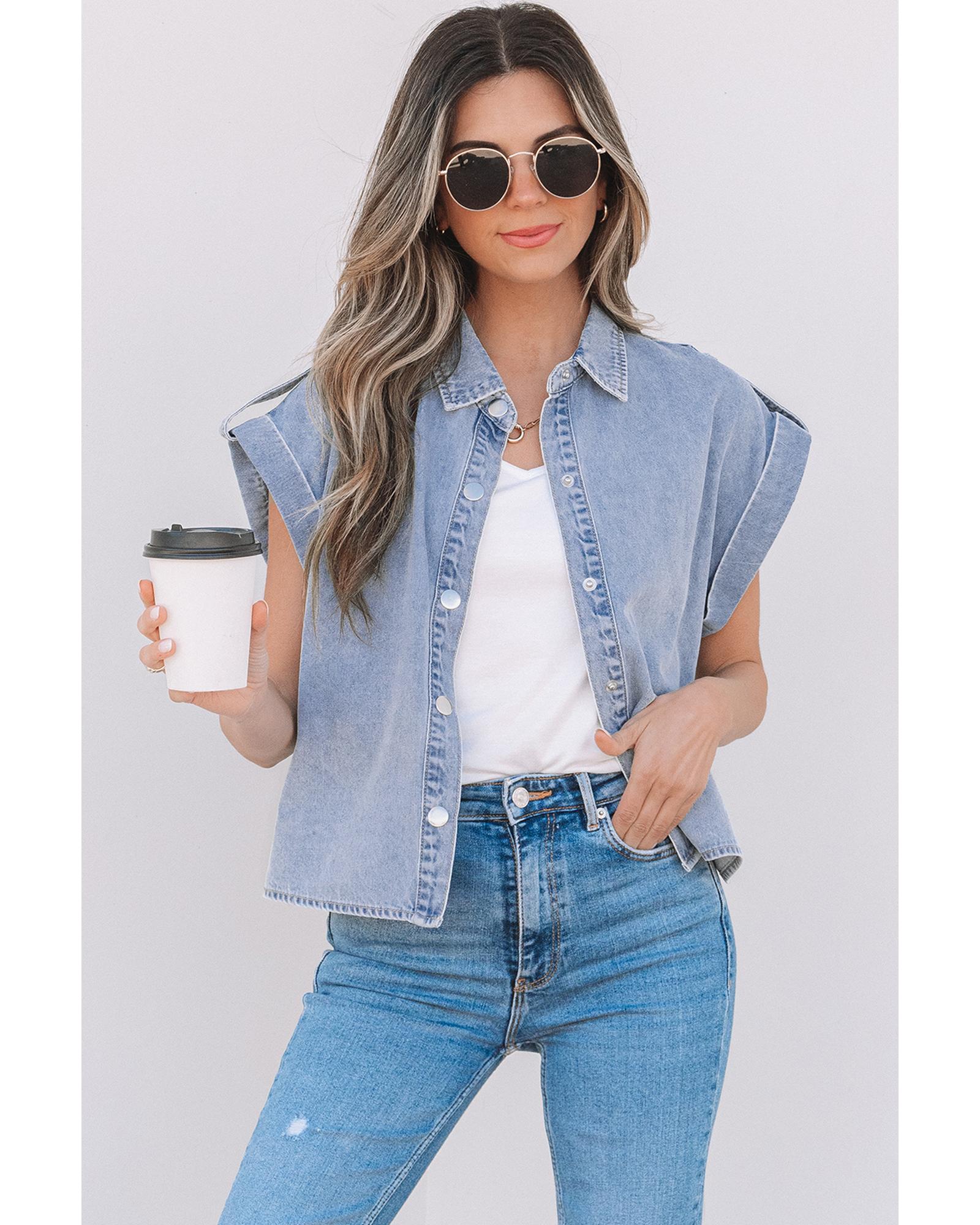 Dusk Blue Denim Pinup Folded Cap Sleeve Shirt – XL
