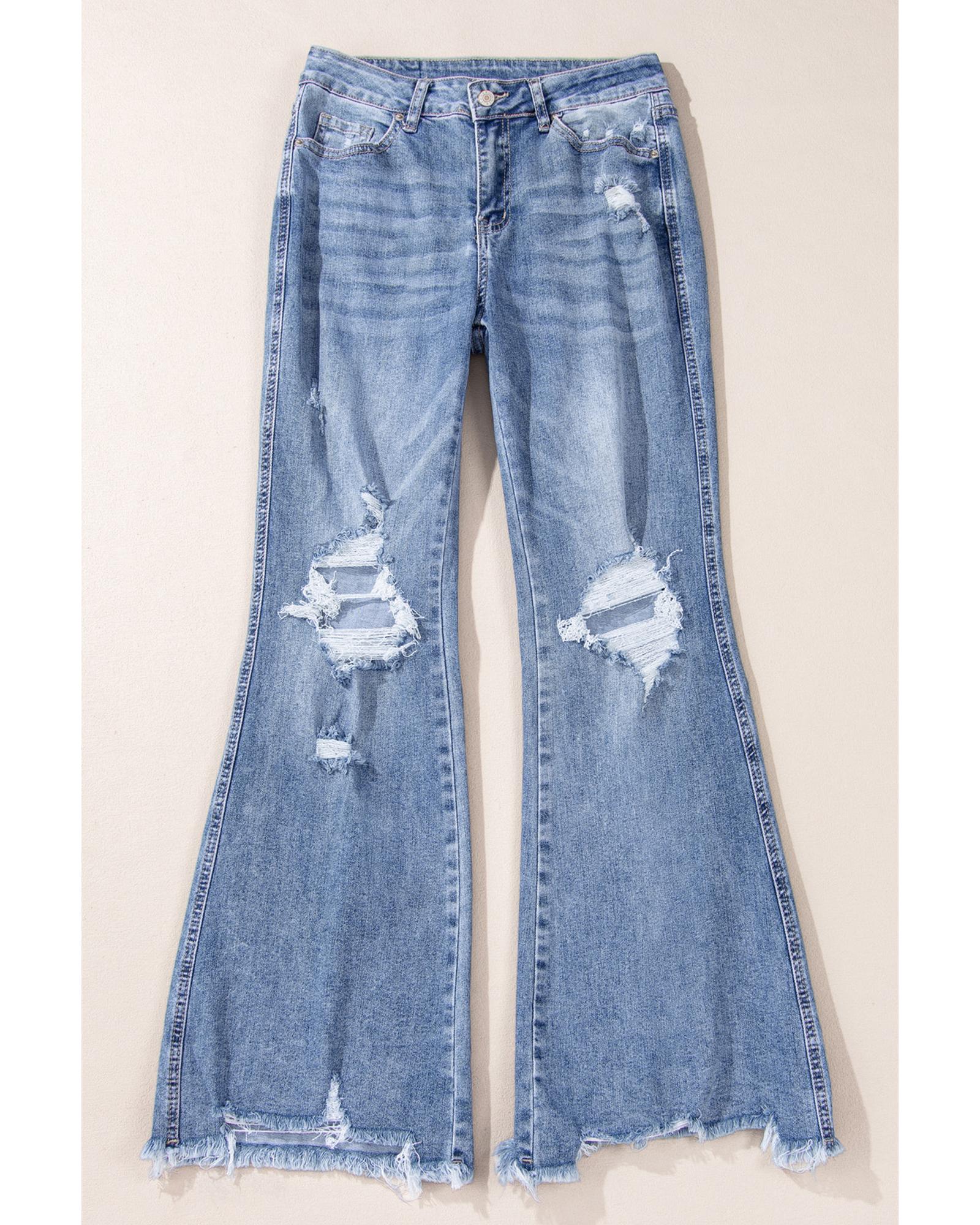 Dusk Blue High Rise Ripped Distressed Hem Flared Jeans – 12 US