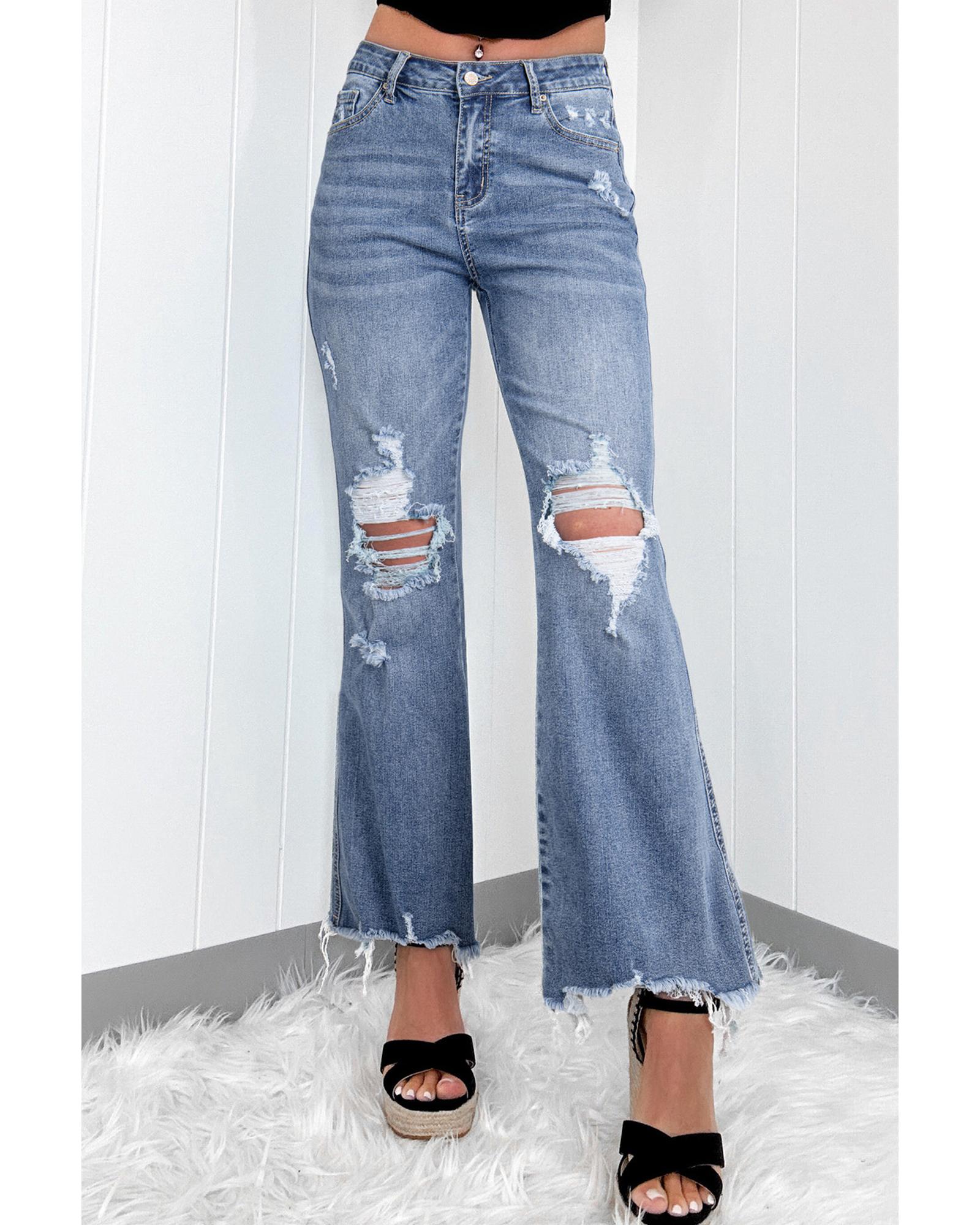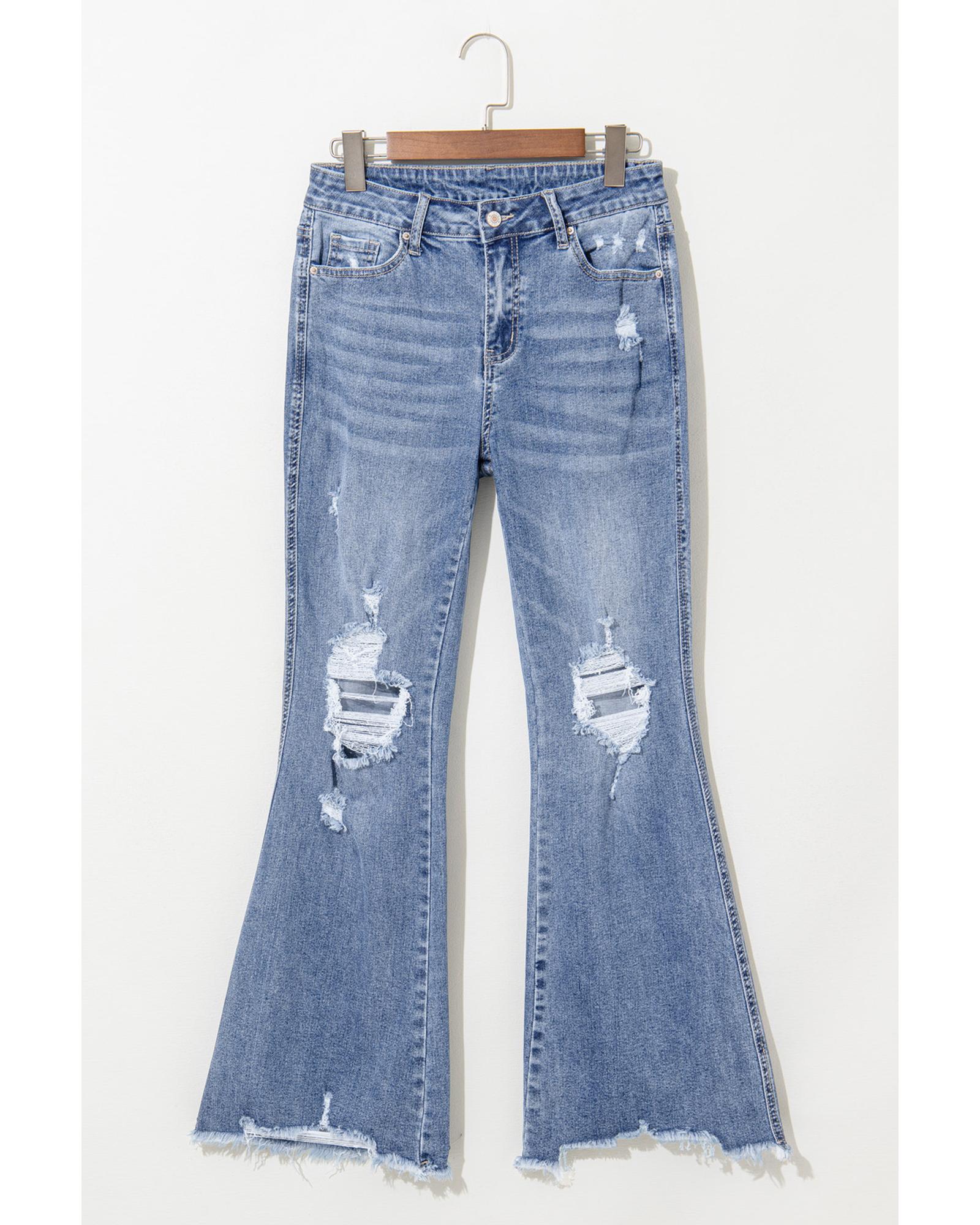 Dusk Blue High Rise Ripped Distressed Hem Flared Jeans – 6 US