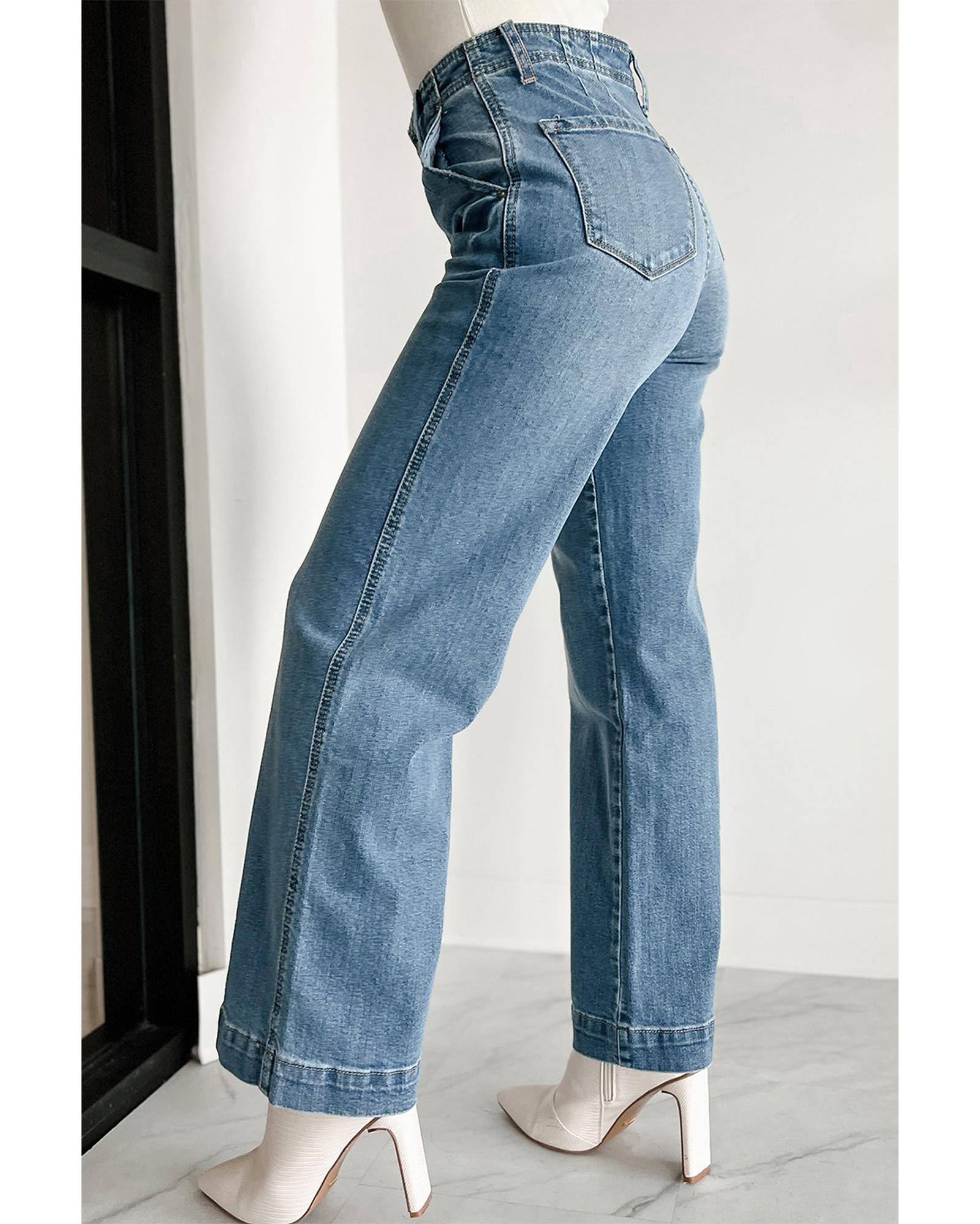 Dusk Blue Multi Buttons Medium Wash Straight Loose Leg Jeans – 16 US