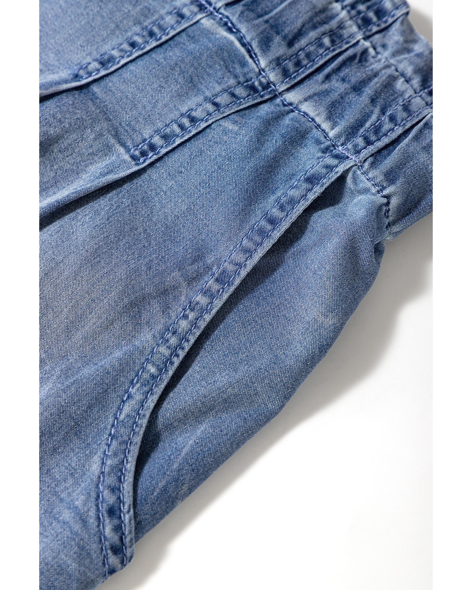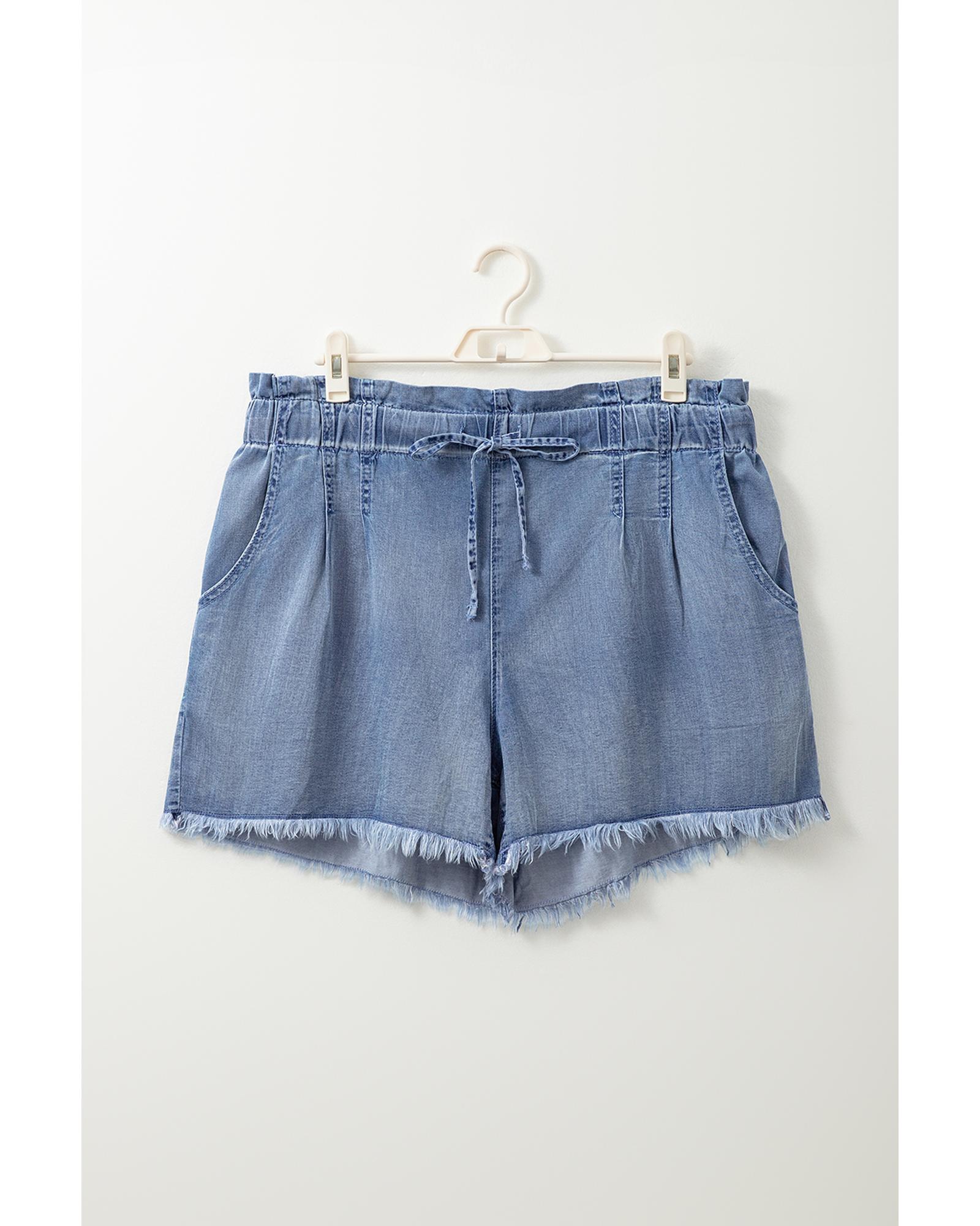 Dusk Blue Raw Hem Lace-up High Waist Plus Size Denim Shorts – 1X