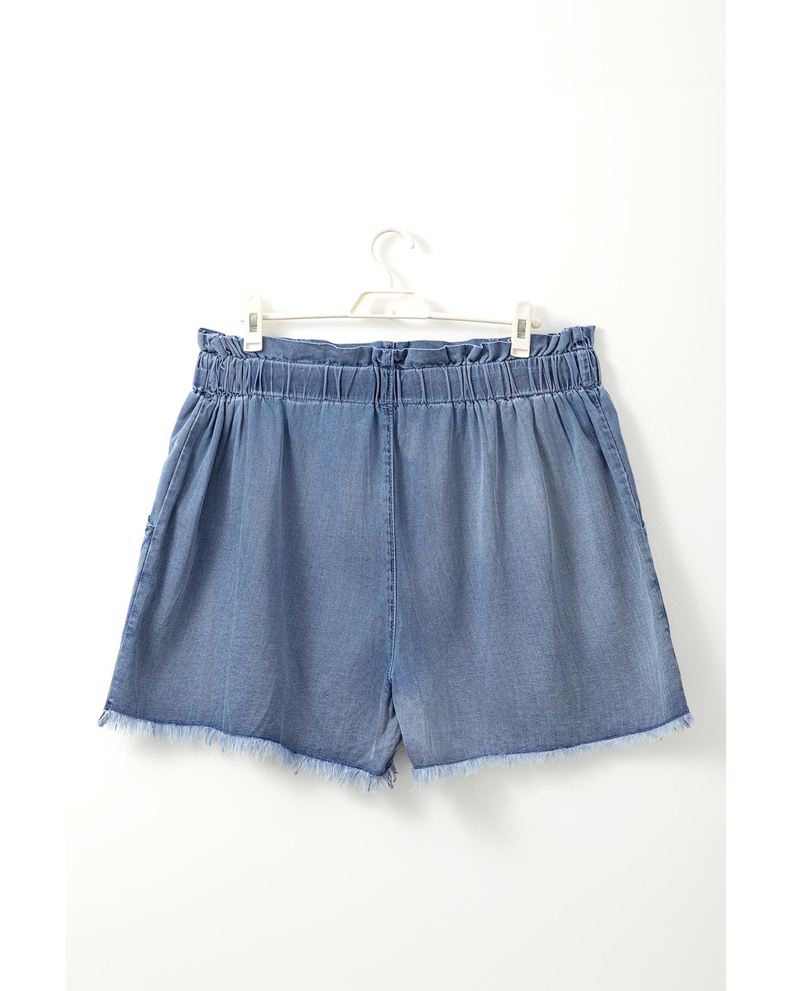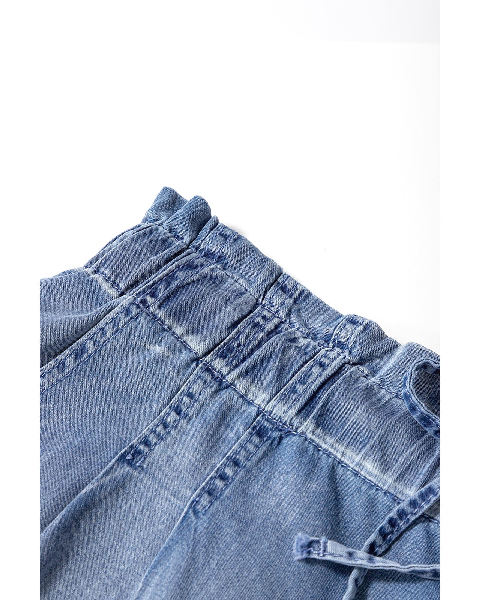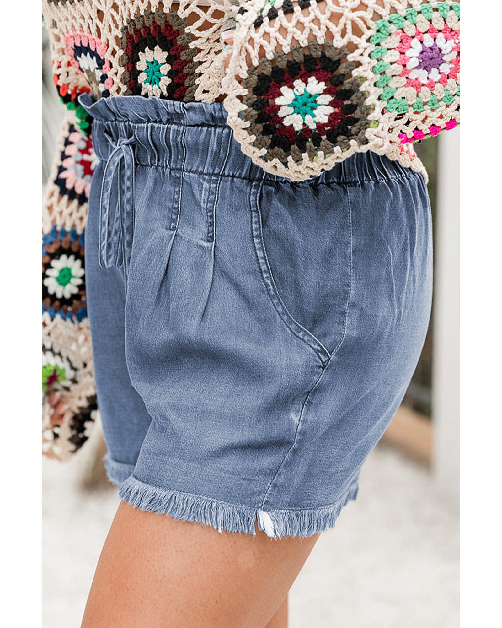 Dusk Blue Raw Hem Lace-up High Waist Plus Size Denim Shorts – 3X