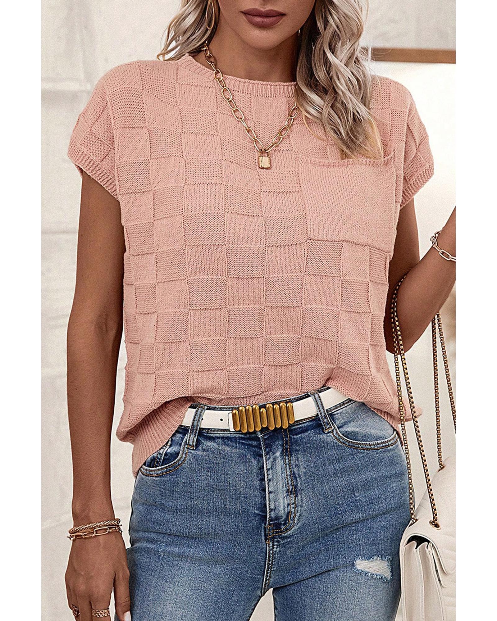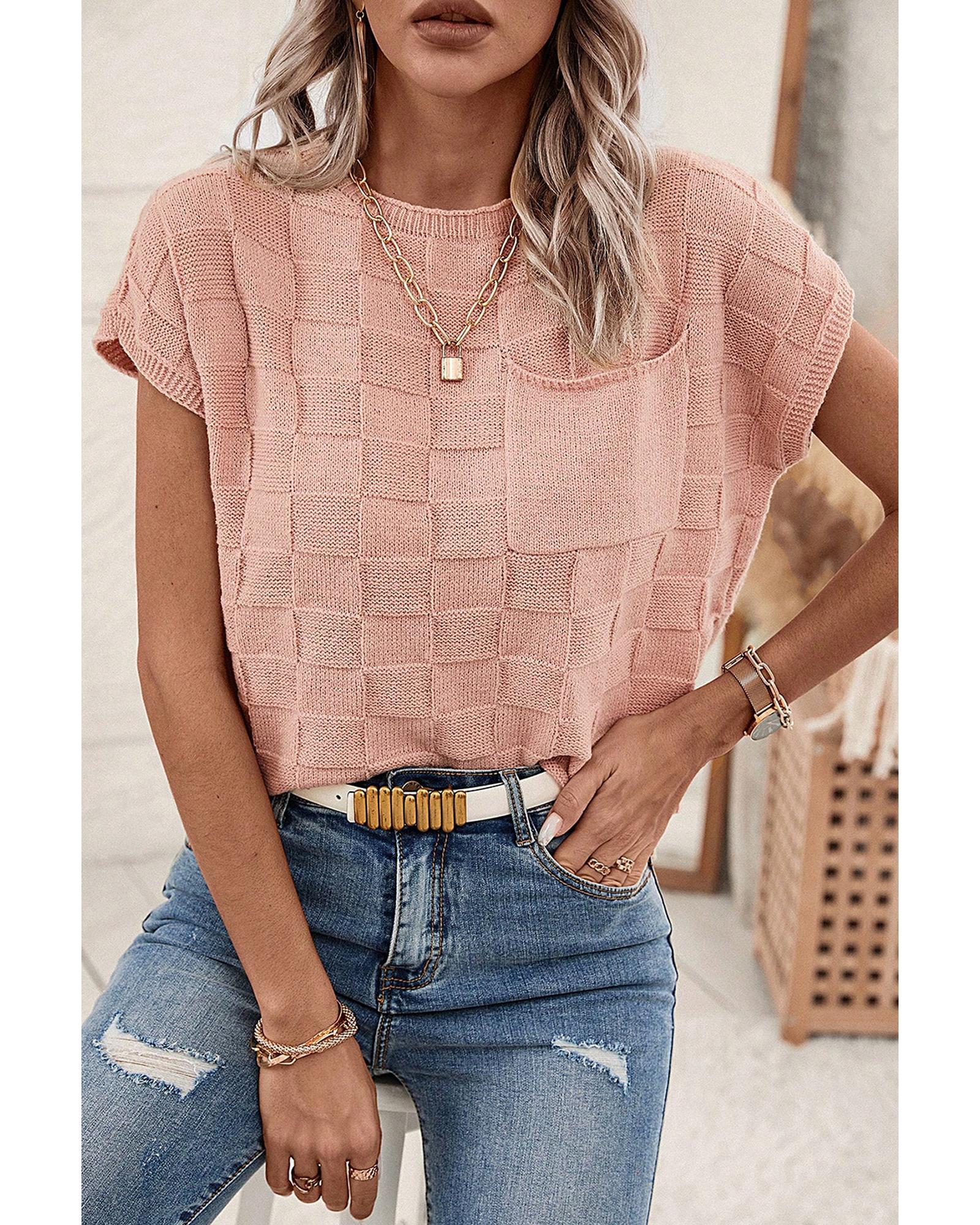 Dusty Pink Lattice Textured Knit Short Sleeve Sweater – L
